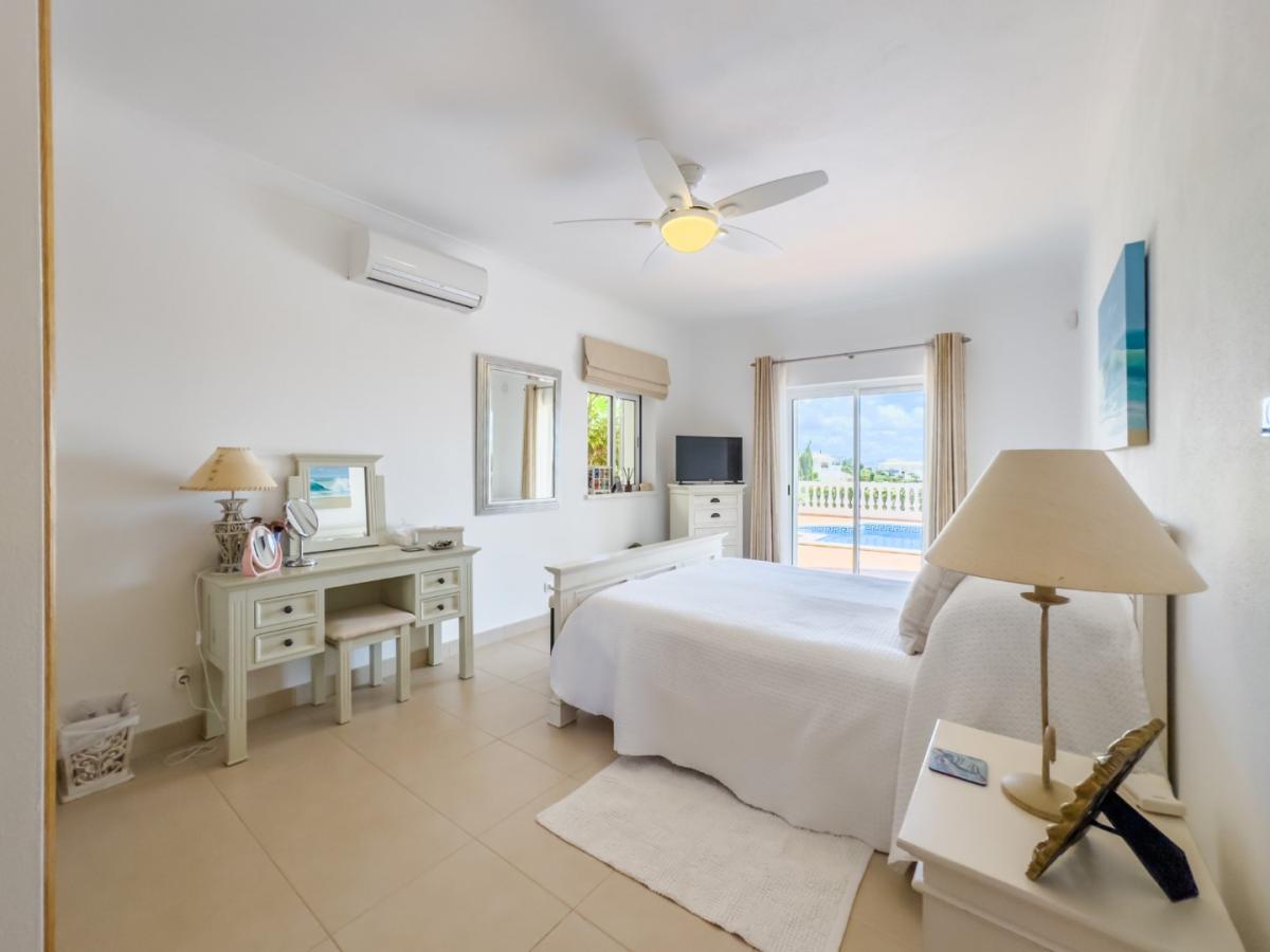Downstairs, there are 3 generously sized double bedrooms, each with en-suite bathrooms and fitted wardrobes. These bedrooms open directly onto the inviting pool terrace, which can also be accessed from the upper level.