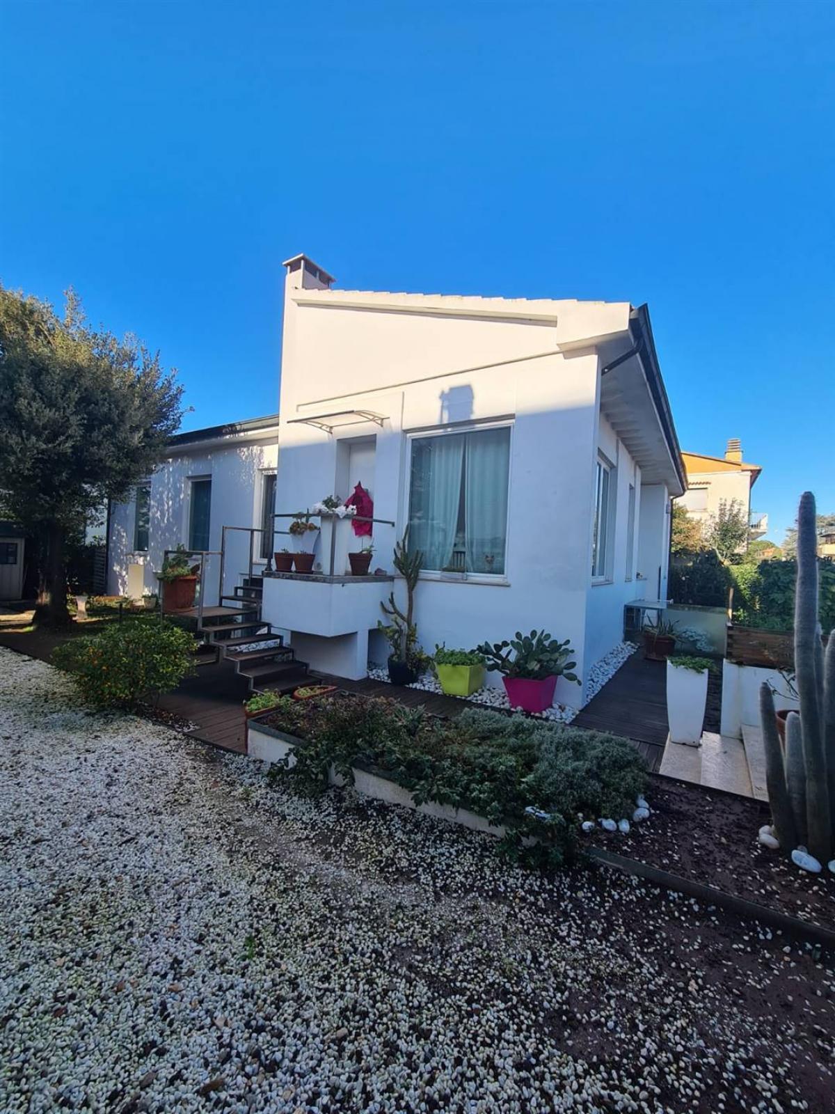 Located in a central area, surrounded by a spacious 380 sqm exclusive garden, this detached villa is spread over three levels and offers elegant and functional spaces, recently renovated with top-quality materials. The house features a large 58 sqm living room, a separate kitchen, a storage room, and a habitable terrace. The night area on the ground floor includes three bedrooms, with the master bedroom having an exclusive bathroom with a jacuzzi tub, plus a second bathroom. The total surface area of the ground floor is 147 sqm.