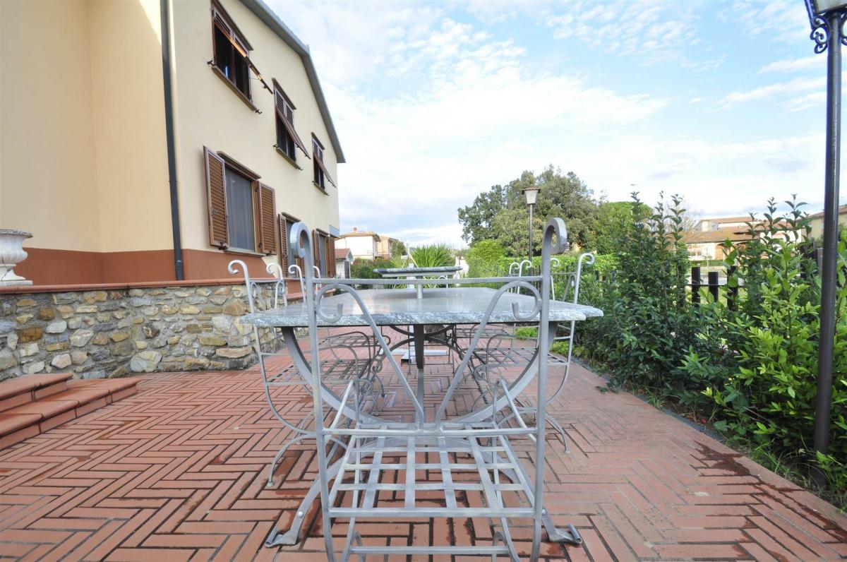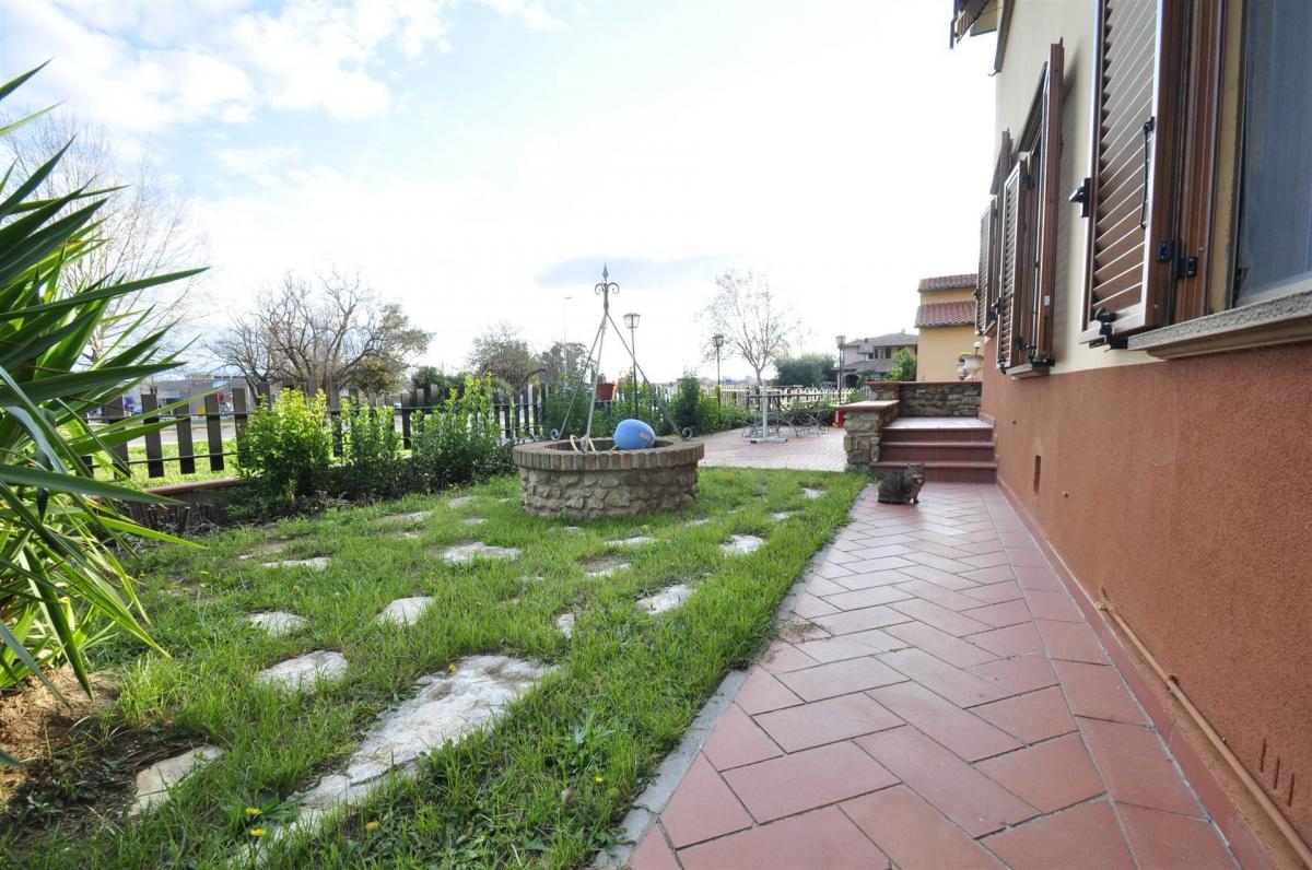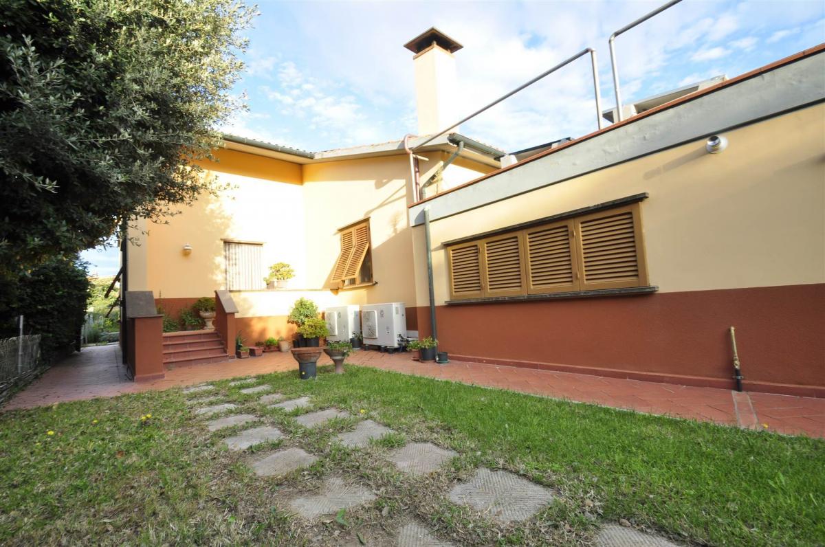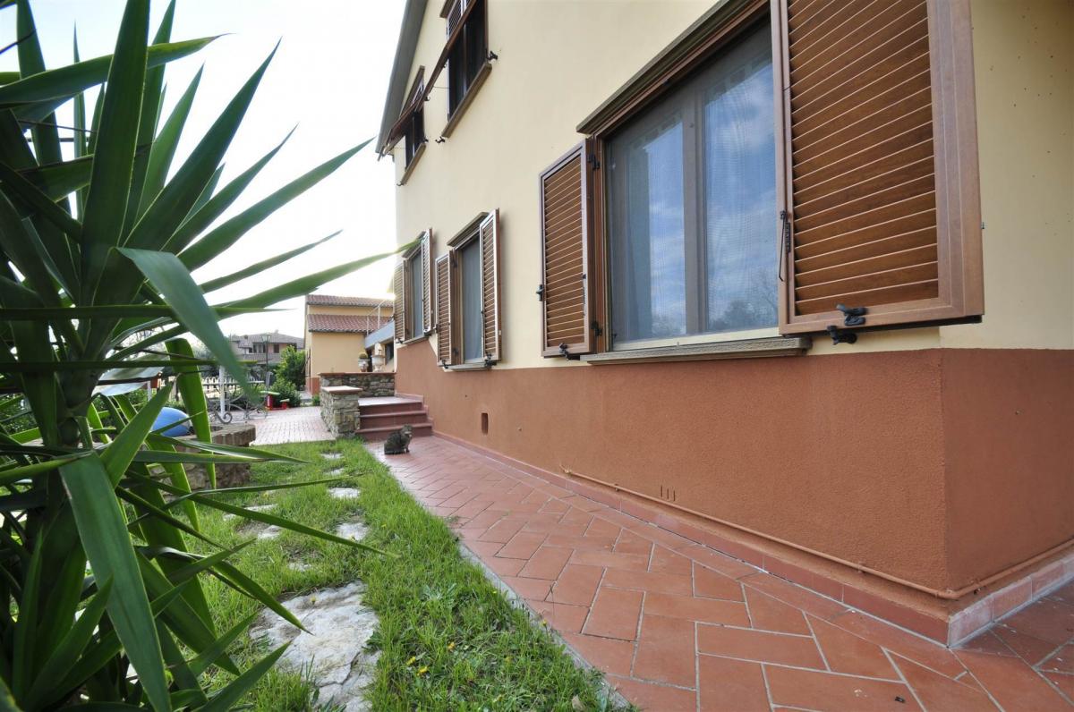 This villa, spread over two floors, offers spacious and well-distributed interiors. On the ground floor, there is a living room with a fireplace and access to the surrounding garden, an eat-in kitchen, two bedrooms, a bathroom, and a storage room. On the first floor, accessible via an internal staircase, there is a living room with an open kitchen, a master bedroom, two attic bedrooms, and a bathroom. The layout of the villa makes it suitable for use by two families, providing each with its own private space. The rooms are bright and well-distributed, ideal for everyday living or as a potential tourist rental.