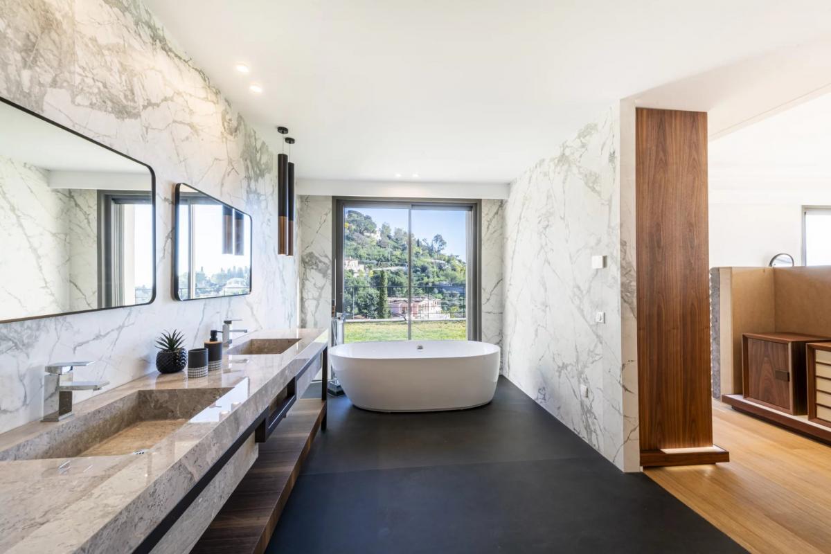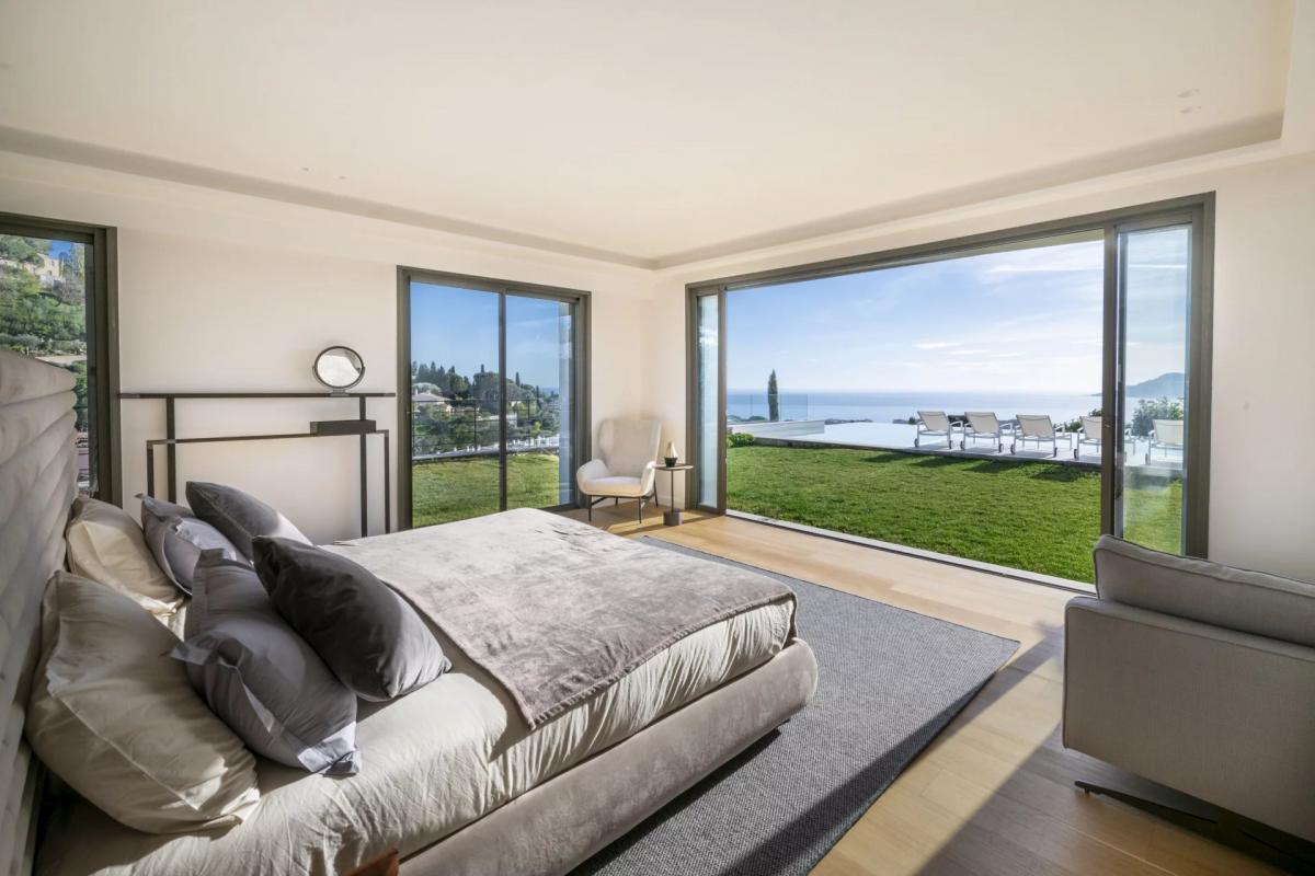in the Croix des Gardes, built on two levels, this 473m2 contemporary villa offers stunning sea views and an infinity salt pool.