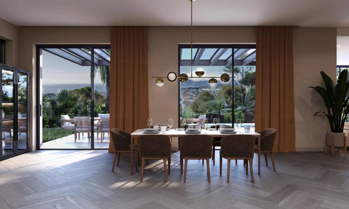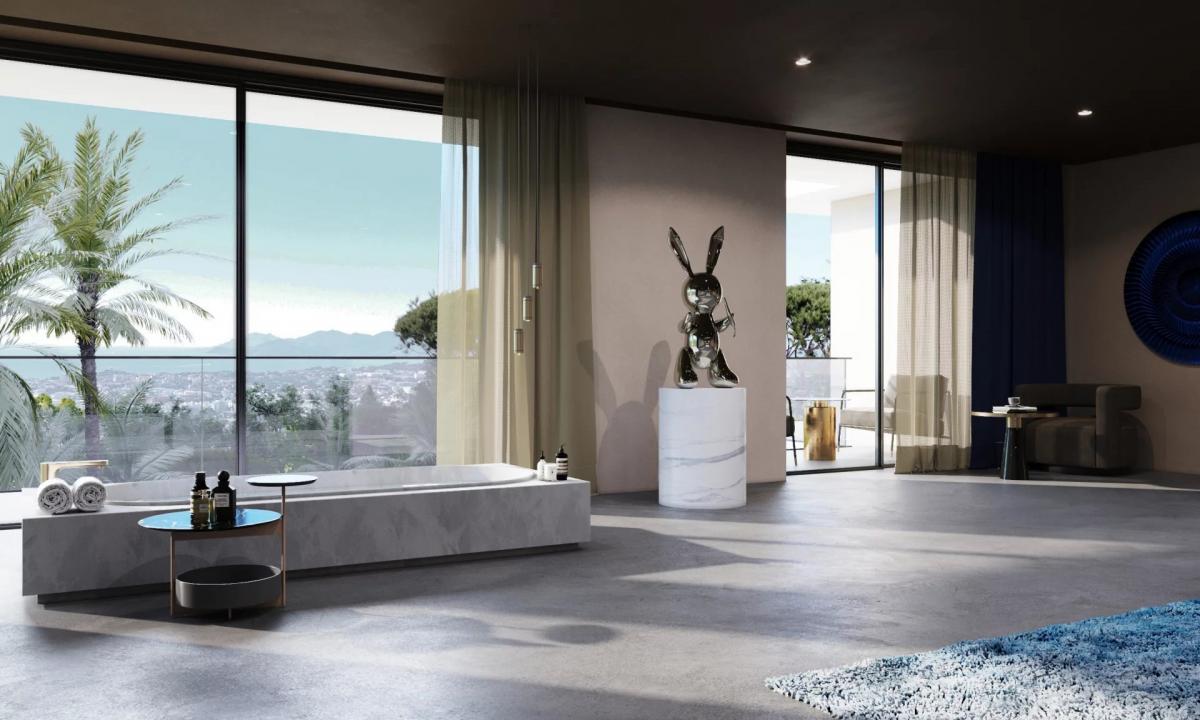 A prestigious driveway leads you to this sublime contemporary villa of 450 m2, set in a 2,090 m2 plot in a private, secure estate on the heights of Super-Cannes, with exceptional 180-degree views over Cap d'Antibes, the sea and the Alps.