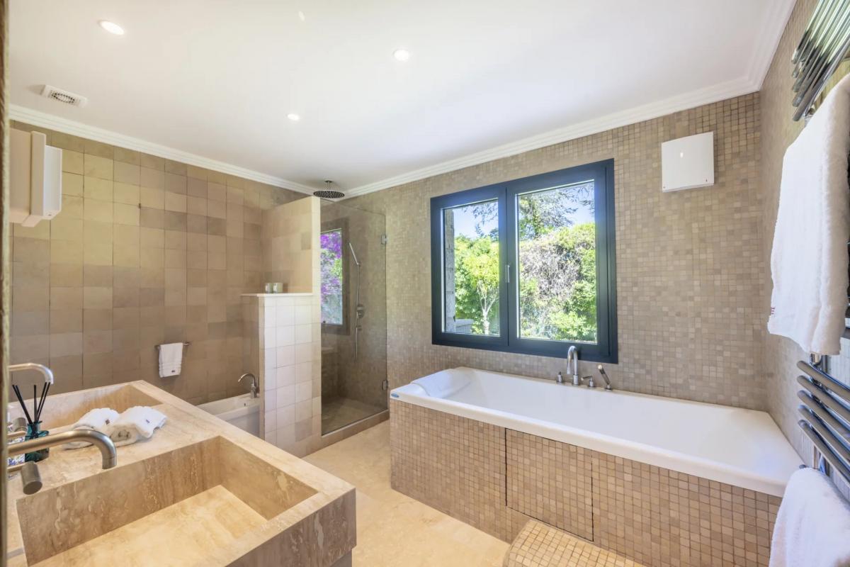 The villa has been completely renovated in a modern style using high-quality materials and features underfloor heating and air conditioning. it offers 5 bedrooms, a large, bright living room with a fireplace, an open-plan kitchen opening onto a beautiful terrace with sea views, a study and a magnificent wine cellar built into the rock.