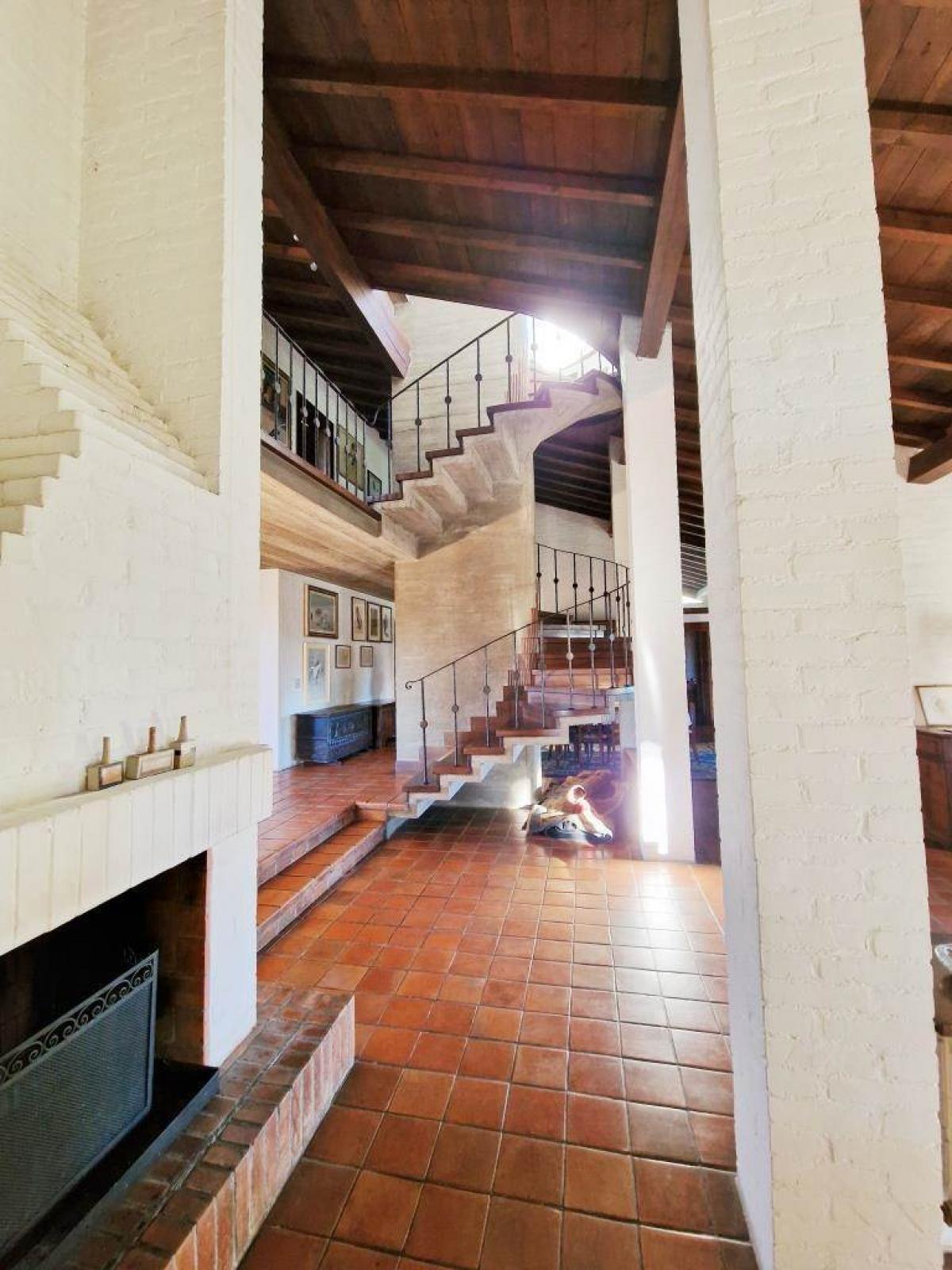 On the first floor, the gallery provides access to the sleeping area, which features a master bedroom with en-suite bathroom and a large panoramic terrace. Also on the first floor is an independent apartment with living room, kitchenette, two bedrooms, and a bathroom, accessible from the gallery or a private external staircase.