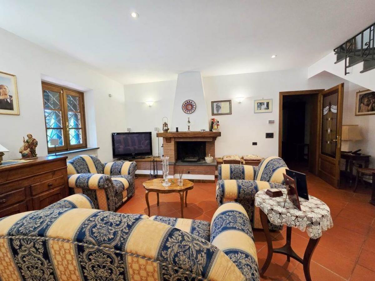 The main entrance, preceded by a lovely porch, opens into a bright and spacious living room with fireplace, perfect for family gatherings. Continuing on, there is a large kitchen with fireplace and direct access to the garden, ideal for outdoor dining.