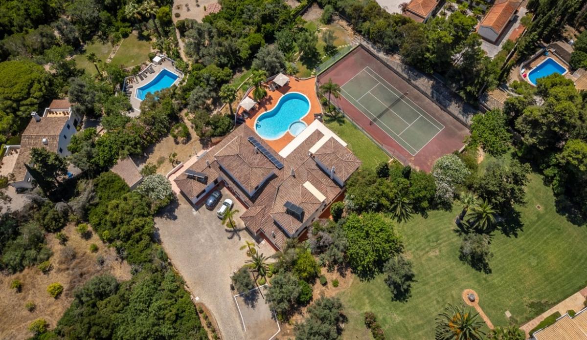 This 370 m2 detached Moroccan-style villa is set on a 3947 m2 plot and features seven ensuite bedrooms, an entrance hall, a living room with a fireplace, a second sitting room overlooking the pool and garden, a dining room, a fully-equipped kitchen with modern appliances, a basement with games and cinema room, a garage provides a separate apartment with its own kitchen, living area, shower/WC which can serve as an eight bedroom, swimming pool, paddling pool for children, tennis court, gardens, terraces, barbecue, Al Fresco dining areas and driveway for parking. Layout * Entrance hall * Open-plan living and a dining room * Second sitting room overlooking the pool and garden * Modern fitted kitchen * Garage with guest annex space and 8th bedroom * Seven bedrooms and eight bathrooms * Multi-purpose basement with games room and home cinema Outside * Heated pool and paddling pool for children * Sun terraces and a covered terrace with a fireplace * Tennis court * Driveway parking spaces * Gardens with olive, lemon, and banana trees * BBQ and Al Fresco dining areas Location Nestled just 1.5 km east of Carvoeiro and behind Centianes Beach, within walking distance, a short drive to shops, bars, and restaurants in Carvoeiro. At a glance * 370 m2 build, 3,947m2 plot * Built in 2018 * Seven bedrooms, eight bathrooms * Basement with games and cinema rooms * Garage with guest apartment and possible 8th bedroom * Pools, terraces, Al Fresco dining, tennis court * Driveway parking area Please note: The property is sold with rental bookings & income for 2026