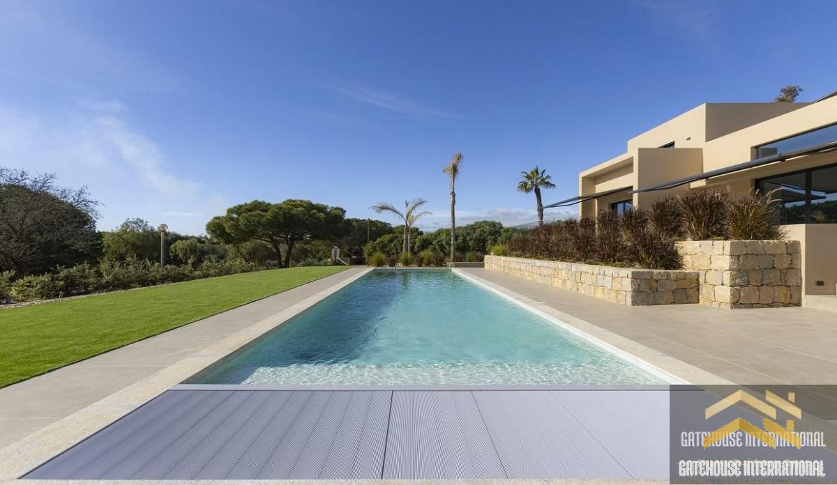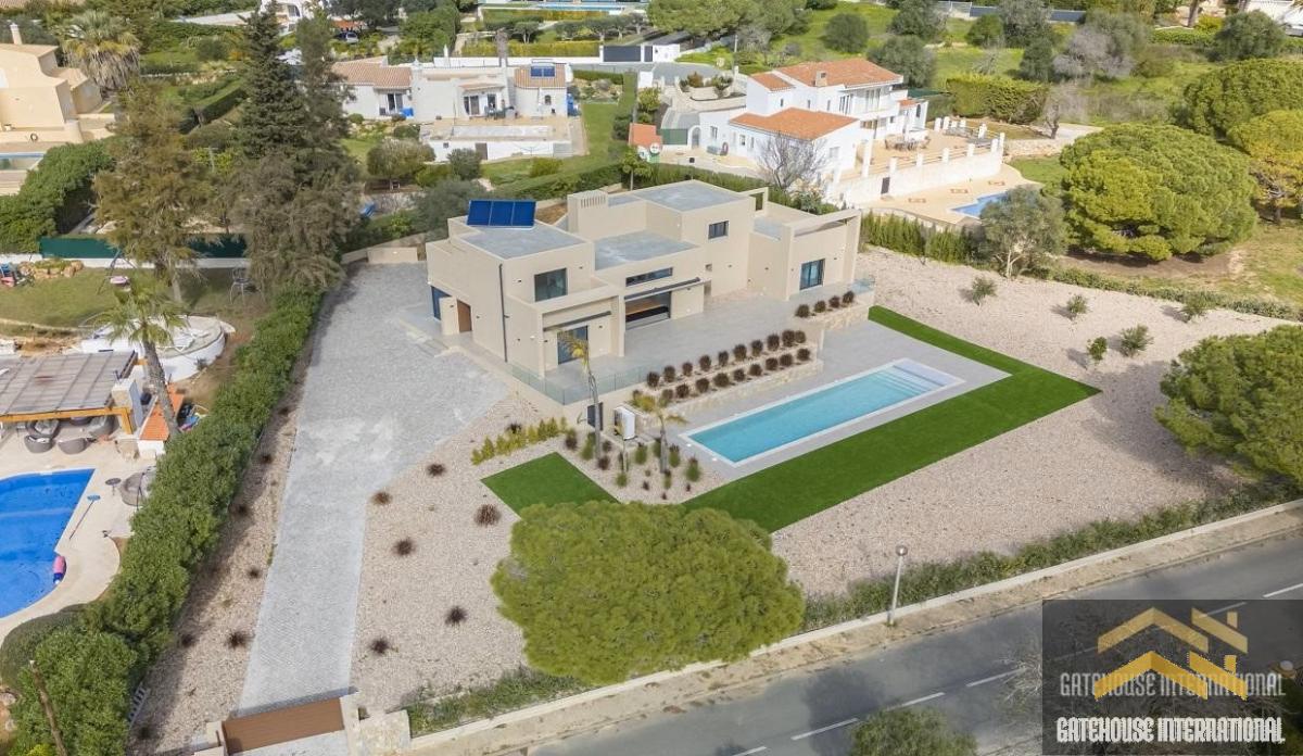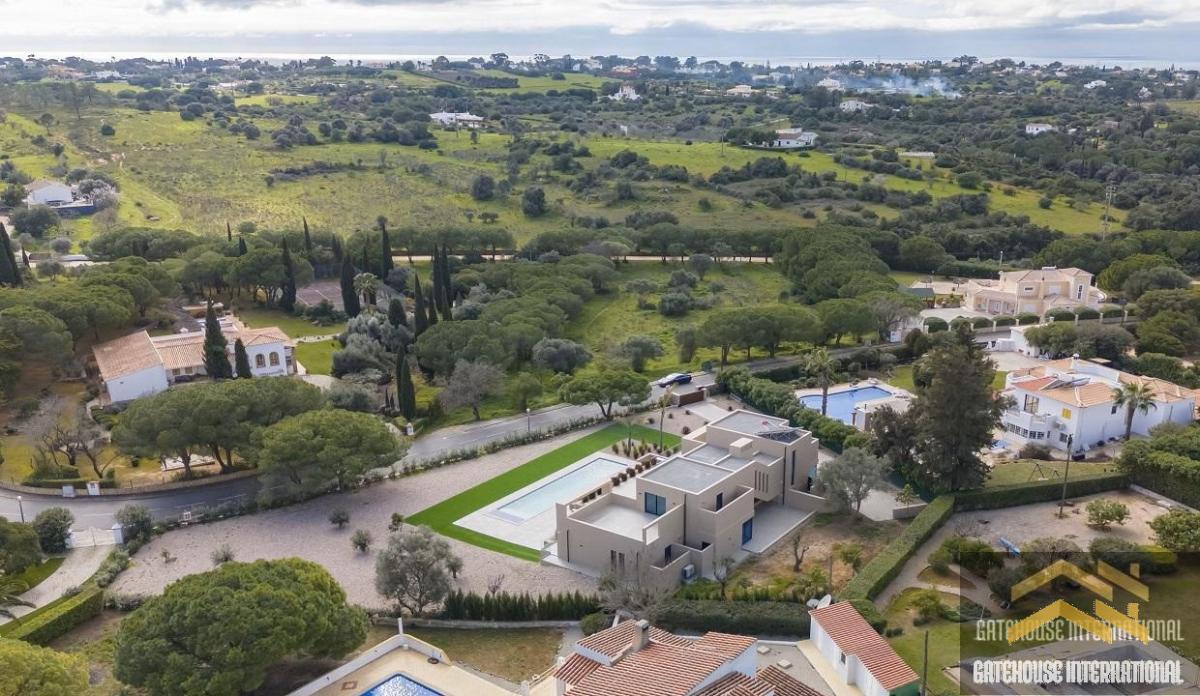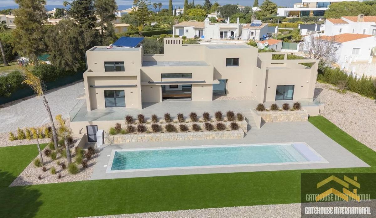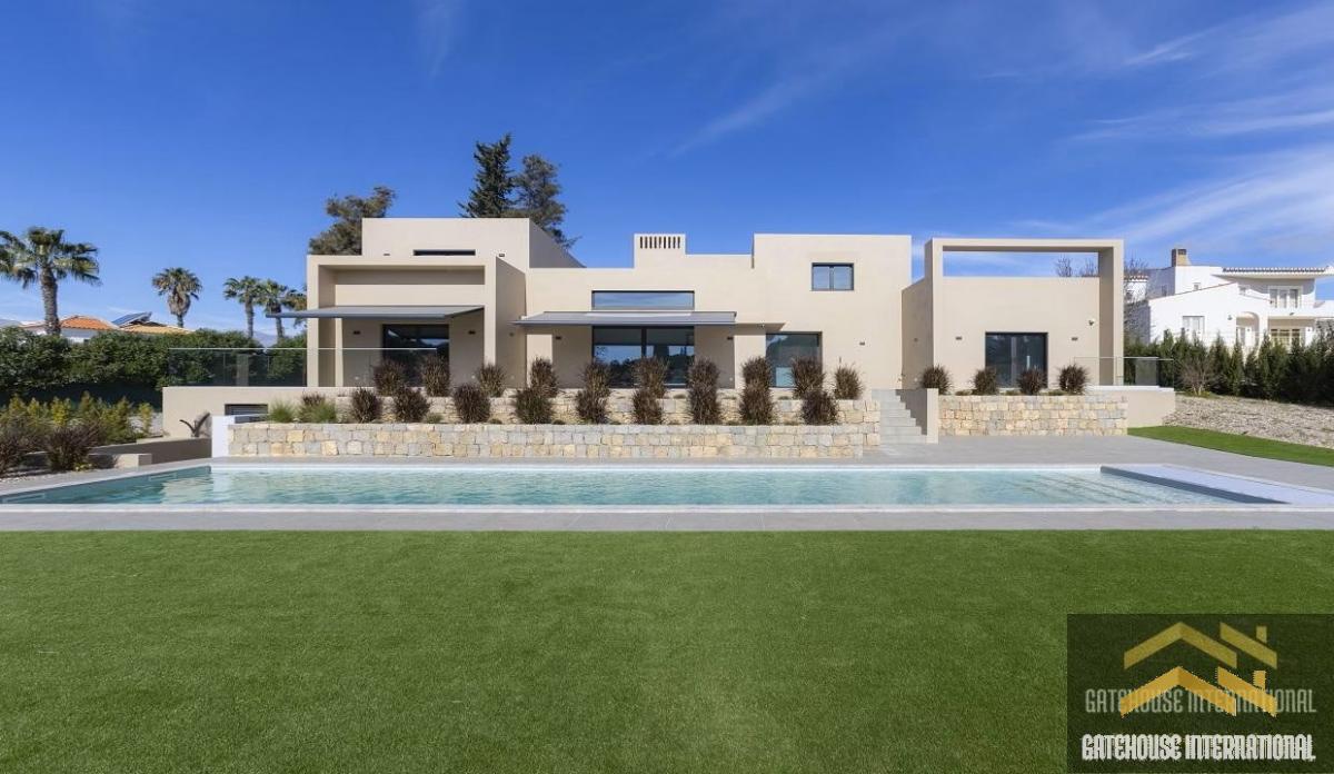 4 Bed Luxury Villa For Sale in Carvoeiro Algarve - this modern luxury villa with 4 bedroom suites sits in a plot of 2,260m2 with a feature 14 metre length swimming pool located between Lagoa and Carvoeiro. The villa comprises a main entrance that leads to the large living room, with a fireplace and a large central window overlooking the gardens and pool, a dining area and a high-end large kitchen breakfast room equipped with premium appliances. There are four en-suite bedrooms including two ground floor and two first floor including the master suite. The villa is equipped with a smart home security system that includes CCTV, an alarm, electric shutters, and gates, providing enhanced privacy and safety for its residents.Carvoeiro offers a wide selection of restaurants, with national and international cuisine, shops, bars, post office, mini-markets, banks, medical clinics, dentists, hairdressers, nursery, and primary school. Within a 5-10-minute drive you will find a great selection of supermarkets, Carvoeiro Tennis, Padel & Fitness Club, 2 championship golf courses (Gramacho & Vale de Pinta) and some of the most beautiful beaches of Algarve (Benagil and Praia da Marinha) and Algarve Nobel school and German school. Faro international Airport is a 40-45-minute drive away.