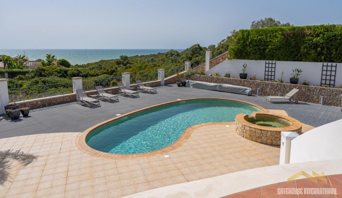 Sea Front Villa With Guest Apartment in Carvoeiro Algarve - A big and luxurious property built o 3 floors situated within awalking distance from the beach. This detached villa features an entrance hall, a spacious living room showcasing a curved central large window facing the ocean, a fully fitted and equipped kitchen with a centre island, a laundry room, a cloakroom, 4 bedrooms and 3 bathrooms. The basement has a separate guest apartment with three bedrooms, 3 bathrooms (one of them en-suite), a large living room with modern kitchen, library/ sitting area, gym, storage room, garage for 2 cars and wine cellar. Outside is a kidney shapped salt water and heated swimming pool, Jacuzzi, BBQ area, Al fresco dining spaces, terraces, storage area, parking areas and gardens. interior: - entrance hall - living room showcasing a curved central large window facing the ocean - fully fitted and equipped kitchen with a centre island - laundry room - cloakroom - 4 bedrooms - 3 bathrooms Basement: - guest apartment with three bedrooms, 3 bathrooms, a large living room with modern kitchen, library/ sitting area - garage for 2 cars - storage room - wine cellar - gym Exterior: - kidney shapped salt water and heated swimming pool - Jacuzzi for 4 people - BBQ and Al fresco dining spaces - terraces - storage area - parking areas - gardens Carvoeiro is a lovely tourist town with lovely beaches such as Paradise Beach (Praia de Paraiso) where there are steps that take you down to a private little beach. Also, the AlgarSeco is a popular seaside destination consisting of walkways along a stunning coastline with caves. The town has plenty of restaurants and bars, souvenir shops, banks, and local stores along the way and located within a 5-10-minute drive you will find a great selection of international supermarkets, 2 championship golf courses (Gramacho & Vale de Pinta), some of the most beautiful beaches of Algarve (Benagil, Praia da Marinha, Caneiros) 20-minute drive from the mall Aqua Shopping center in Portimao, Carvoeiro is a 50-minute drive from Faro international Airport.
