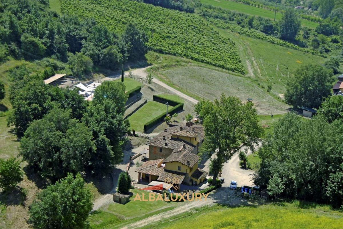 Charming farmhouse in Tuscany, 25 km from Florence and 40 km from Siena, in the centre of a small valley cultivated with olive trees, vines and century-old plants, inside the Natural Reserve of the Calanchi Park, immersed in about 21 hectares of Tuscan countryside. The farm is spread over a total area of 21 hectares, among vineyards, olive groves and woods in the typical Tuscan landscape. The farm is equipped with:^- 11 Apartments: The farmhouse of approx. 1750 sqm offers 11 delightful and cosy flats, all immersed in the beautiful park and with independent entrance. The flats have been renovated according to the typical Tuscan style characterised by ceilings with wooden beams and bell-towers, terracotta floors and ancient brick arches.^All the flats have a fully equipped kitchen, fridge, freezer, oven, 4-burner hob. Each flat has a private table outside.^- Swimming pool: the 14mt x 6mt swimming pool has the lowest point at 1.20mt and the highest at 1.50mt, it is open from May to October^- Barbecue: There are 2 barbecues for communal use^- Laundry: The farmhouse has a laundry room with washing machine and dryer for a fee^- Stables: recently built with fields for horse riding^- Farm equipment shed: 150 sqm^- Internet^- Tennis. 2 km away^- Riding stables. 5 km away^Tuscany is one of the best known and most appreciated places by visitors from all over the world for its typical succession of unique landscapes, characterised by gentle green hills, rich in dense woods, large expanses of vineyards and olive groves, small villages, medieval castles and wineries where you can taste the best wines in the world.^,
