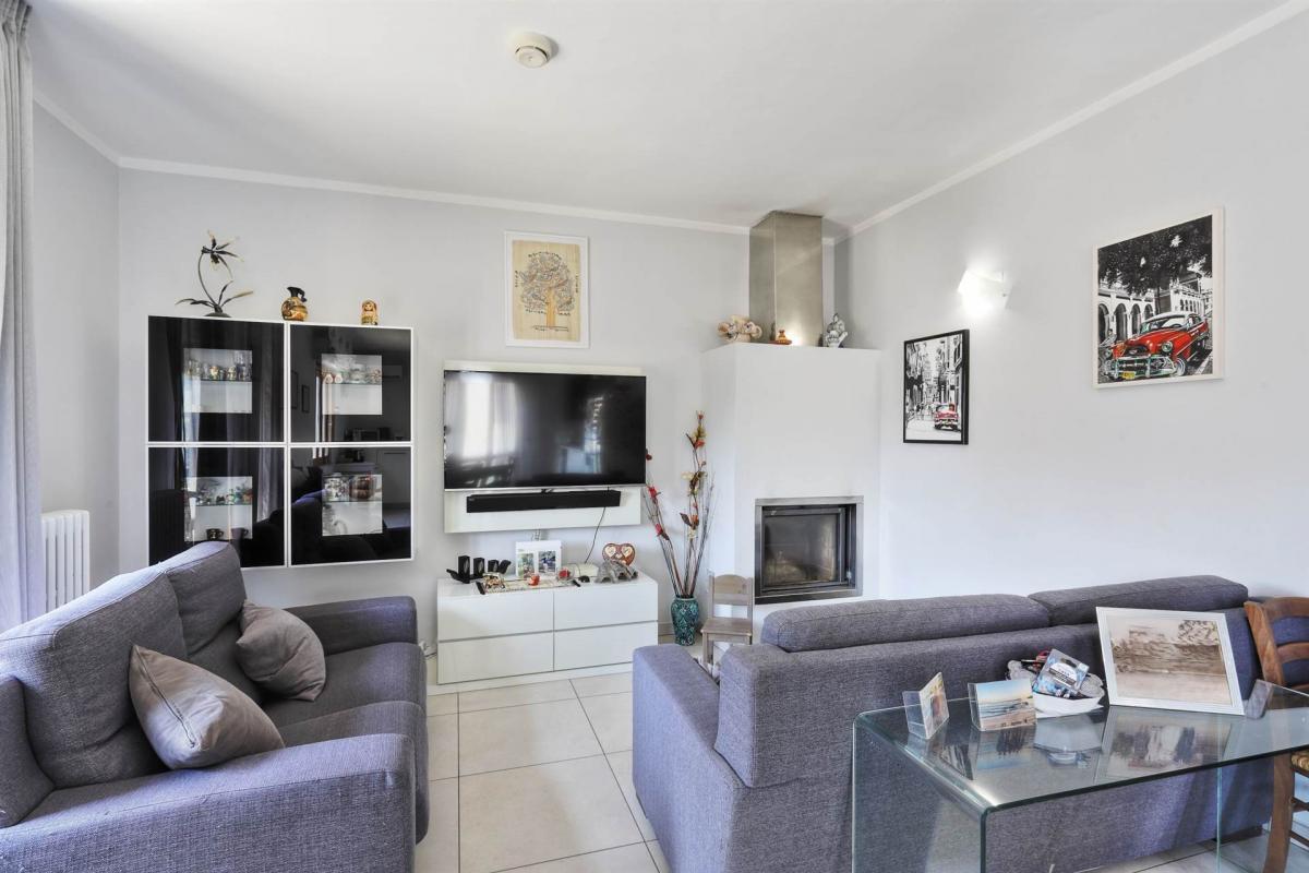 The first floor, connected by an internal staircase, offers an independent layout with a large living room featuring a second fireplace, two panoramic terraces, a laundry room, two double bedrooms (one with en suite bathroom and terrace), and an additional bathroom.