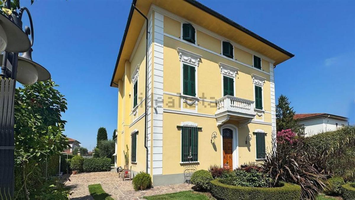 Located in the heart of Castelfranco di Sotto, this elegant early 20th-century Liberty-style villa has been carefully renovated while preserving its historical charm. The living area of approximately 400 sqm is distributed over three levels: on the ground floor, a welcoming entrance hall leads to a bright living room with a fireplace opening onto the charming portico—an inviting space for outdoor dining and relaxation throughout the year. The ground floor also includes a second sitting room, a dining room, a functional kitchen, and a guest bathroom.