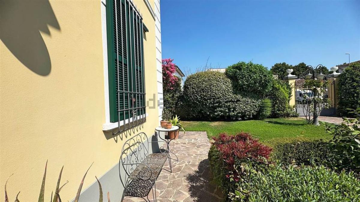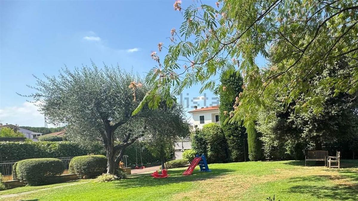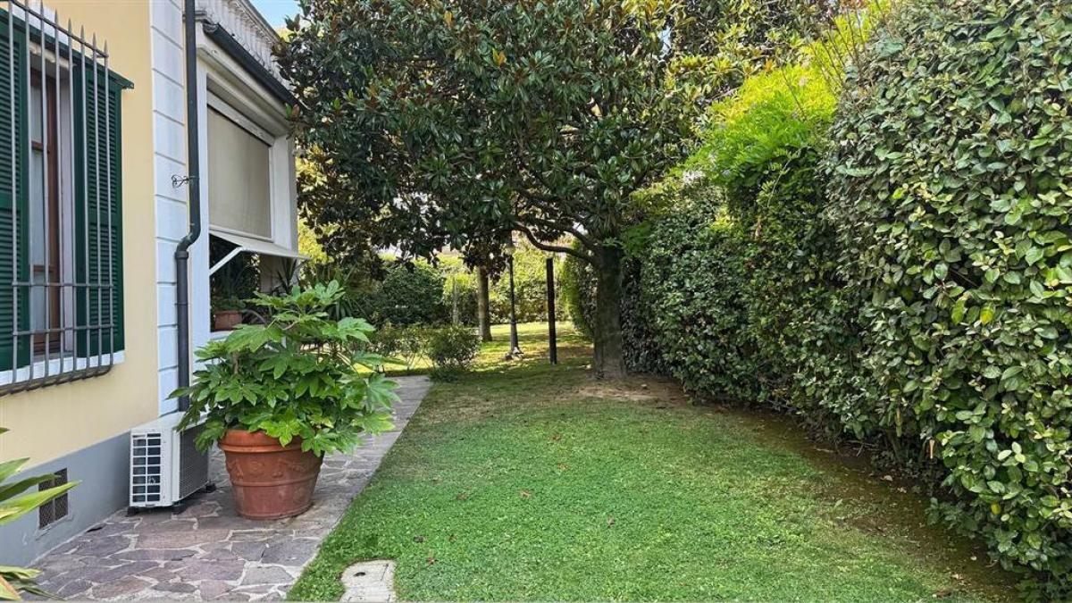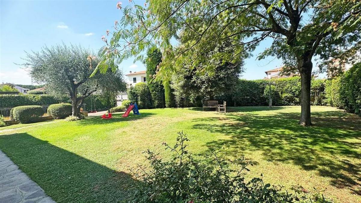Surrounded by an 800 sqm landscaped private garden, the villa also boasts a 70 sqm paved portico ideal for relaxation and entertaining. Modern amenities include an automatic irrigation system, robotic lawn mower, electric gate, video intercom, alarm system, natural gas heating with cast-iron radiators managed by individual floor thermostats, and air conditioning for year-round comfort.