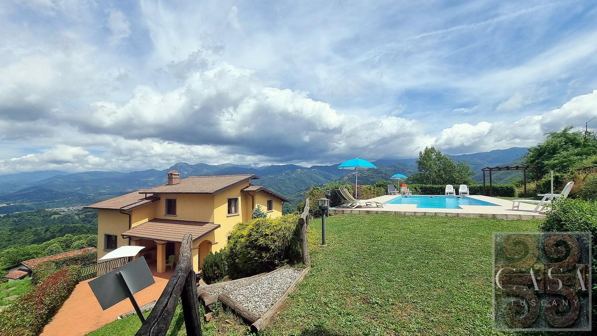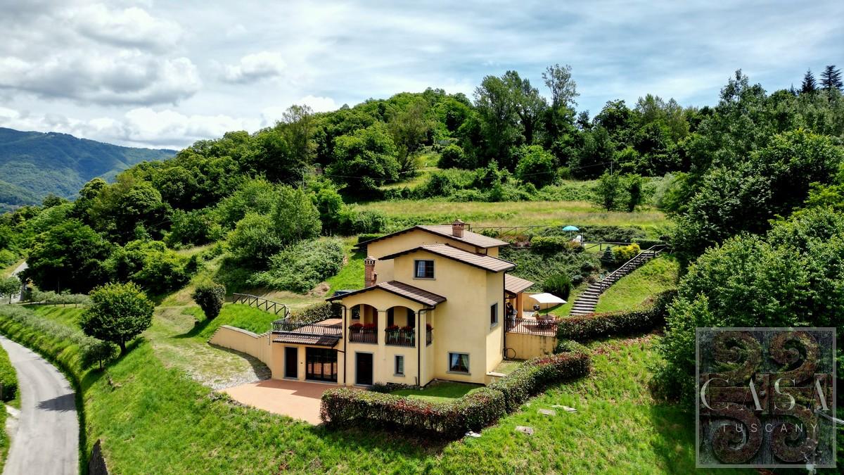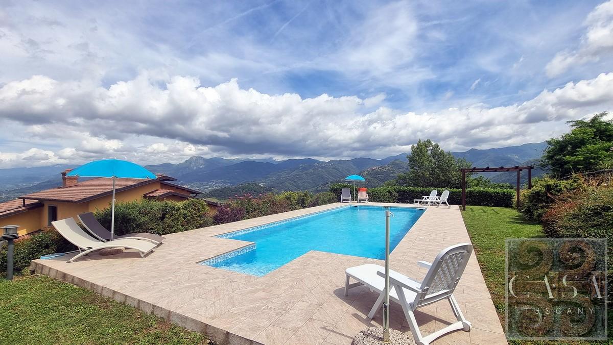 Recently built villa with pool, located in a beautiful panoramic location In the hills 4 km from Castelnuovo di Garfagnana, where the main services are located.The villa has a floor area of 286 sqm and is arranged over two floors plus a basement floor where an apartment with an independent entrance has been created, which is connected to the rest of the house via an internal staircase.