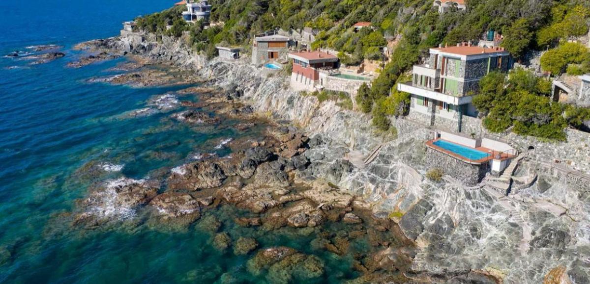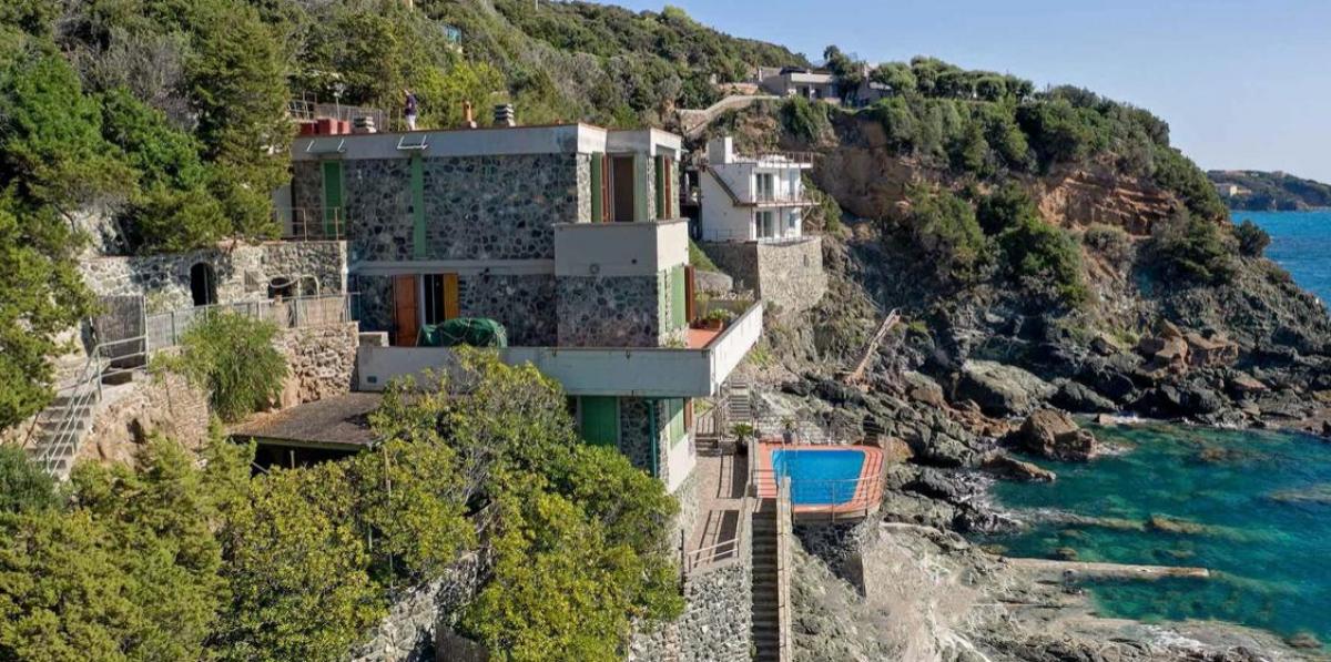 Located near Castiglioncello, a small seaside town particularly popular with celebrities in the 1960s and 1970s. The villa was in fact built in the 60s, of stone, with a sea front living area with terrace, four bedrooms plus a staff apartment on the lower floor.