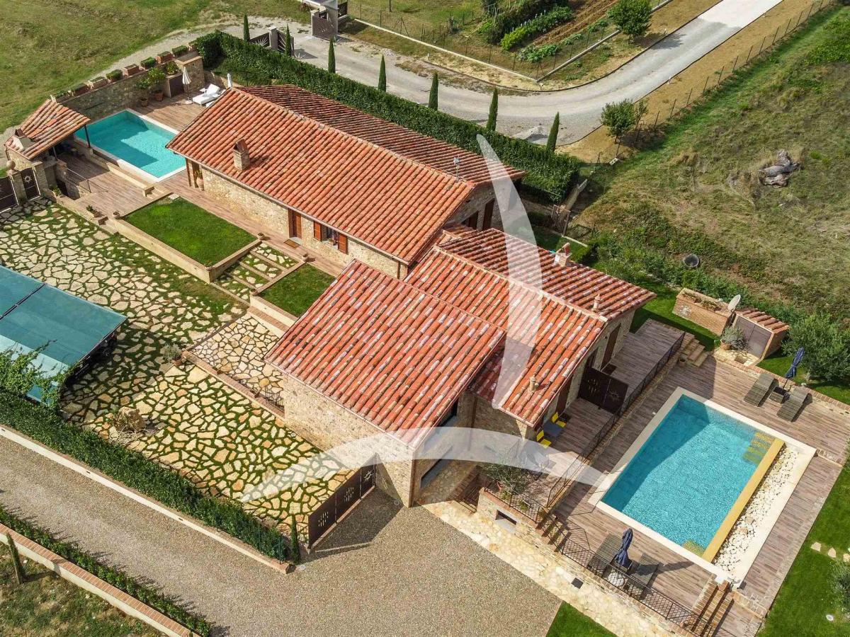 Located in a prime position, this stunning, modern, and luxurious farmhouse, recently built with modern materials but designed in a rustic style, presents a rare opportunity for those seeking a prestigious residence or a charming hospitality business. The property spans approximately 300 square meters and comprises three separate units, making it ideal for a small luxury agriturismo.