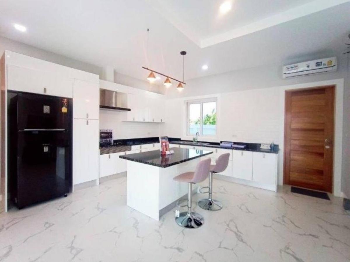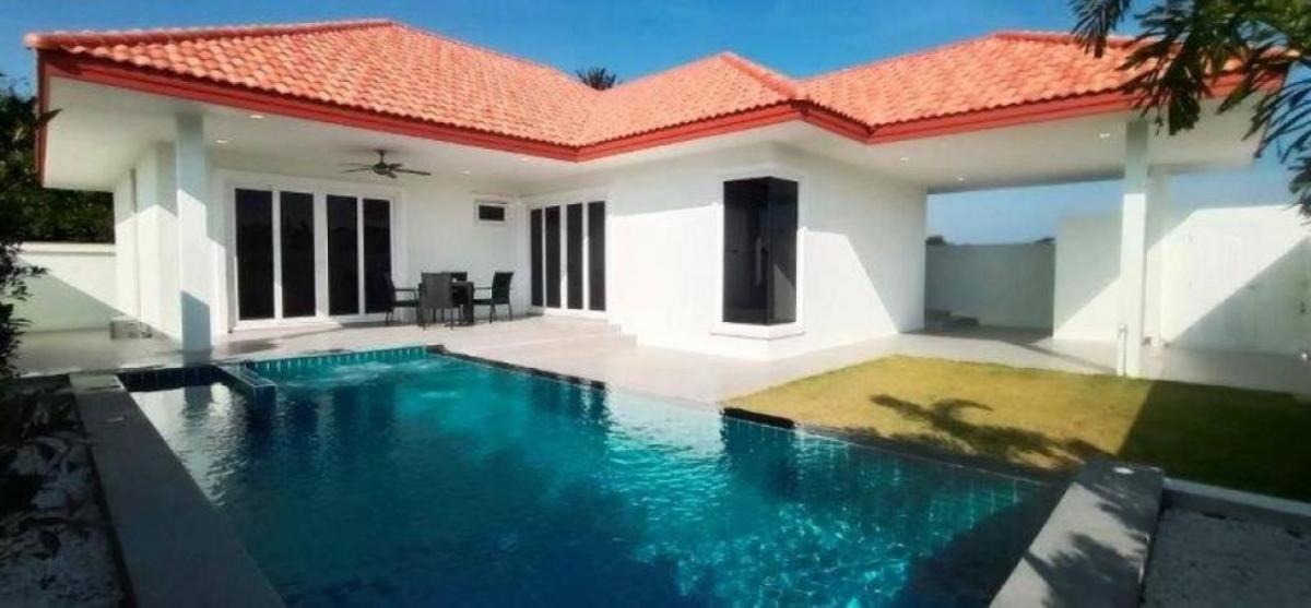 These new off plan villas are located just a 15 min drive on the new 4 lane road going out from Hua Hin to the south and Pranburi. Modern style villas in a private quite development with no monthly common fees! The developer has several villa styles starting on plots from 320 sqm to 630 sqm all of which can customised. The villa sizes available are below and all Villas come with fitted kitchen, bathrooms, aircon's and swimming pool: Villa A - 2 bedrooms & 2 bathrooms Total Built Area: 169 m2 Starting at 4,600,000 Villa B - 2 bedrooms & 2 bathrooms Total Built Area:182 m2 Starting at 4,600,000 Villa C - 3 bedrooms & 2 bathrooms Total Built Area: 188 m2 Starting at 4,750,000 Villa D - 2 bedrooms & 2 bathrooms Total Built Area:181 m2 Starting at 5,250,000 Villa E - 2 bedrooms & 2 bathrooms Total Built Area: 191 m2 Starting at 5,500,000 Villa F - 3 bedrooms & 3 bathrooms Total Built Area: 209 m2 Starting at 5,750,000 Villa G - 3 bedrooms & 4 bathrooms Total Built Area: 210 m2 Starting at 5,900,000 Villa H - 3 bedrooms & 3 bathrooms Total Built Area: 238 m2 Starting at 6,300,000 Villa I - 3 bedrooms & 3 bathrooms Total Built Up Area: 249 m2 Starting at 6,300,000 Locally you can find a variety of local and international restaurants, shopping, health & wellness facilities and world class golf courses in the immediate area. Only 6 kms. to white sandy beaches and just 15 kms. to Hua Hin Bluport Mall. ***Please ask for more information or to arrange a viewing***- * Terrace