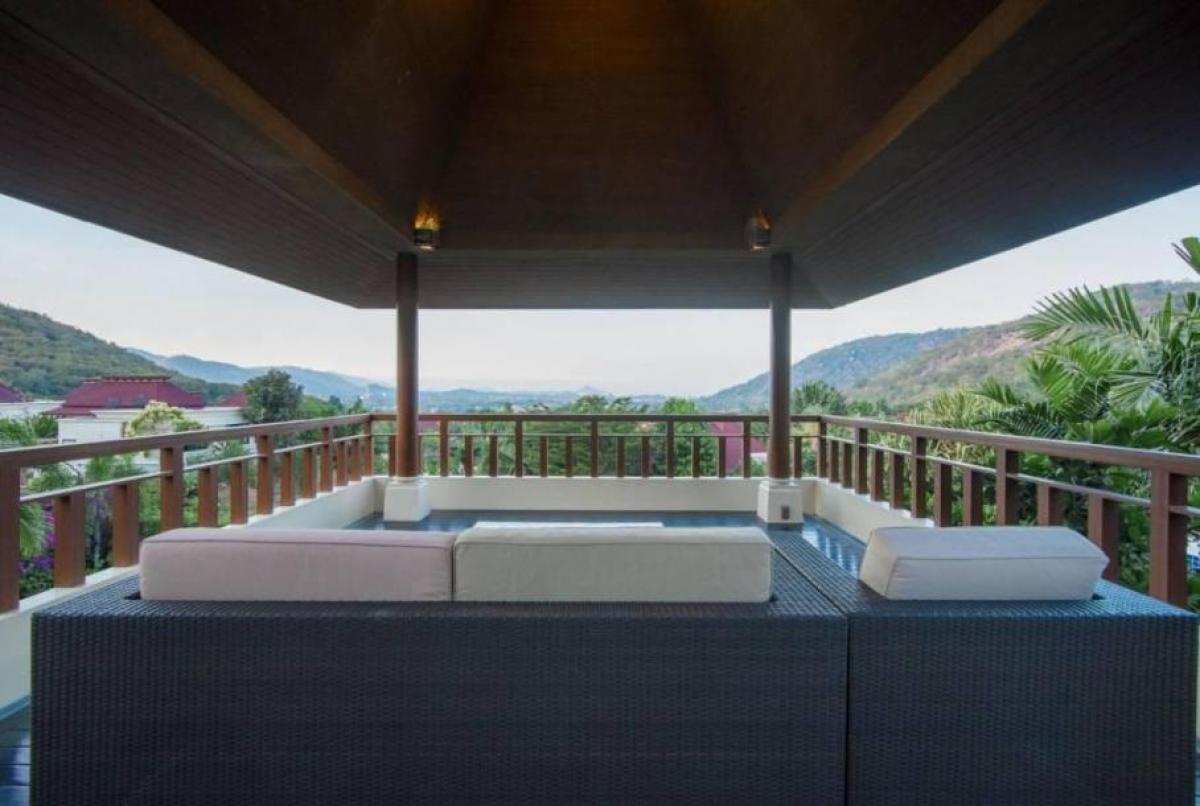 Panorama Pool Villas has some of the best views of any development anywhere in Hua Hin. This luxury two story, four bedroom pool villa is situated on one of the best locations in the development, as far up against the mountainside as you can go. This means you have stunning sea and mountain views from all over the villa's large indoor and outdoor living areas. The property consists of a land plot size of 940 square meters with beautiful, tropical landscaped gardens. There is a covered car port large enough for two cars with central stairway leading to the main house. The saltwater swimming pool is large enough for comfortable swimming and is surrounded by ample outdoor covered living spaces to enjoy the ocean breeze. The house design allows for large, open plan living and dining spaces on the ground floor where the modern, European kitchen is conveniently situated in the center of the home on the western side of the property. Upstairs you will find 4 incredibly well fitted, fully furnished bedrooms and 4 bathrooms. The views from the second floor are jaw dropping, with the main attraction being the 2nd floor outdoor sala on the eastern wing of the villa where you can see for miles over the rolling hills onto the gulf of Thailand. This is one of the only FREEHOLD villas available on Panorama and is undoubtedly one of the best plots with some of the best views on this development, if not in Hua Hin. Inquire today for a private viewing.- * Terrace