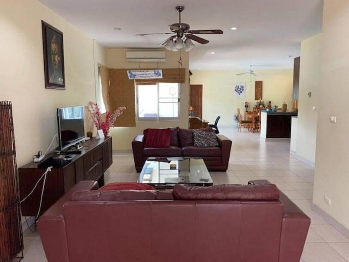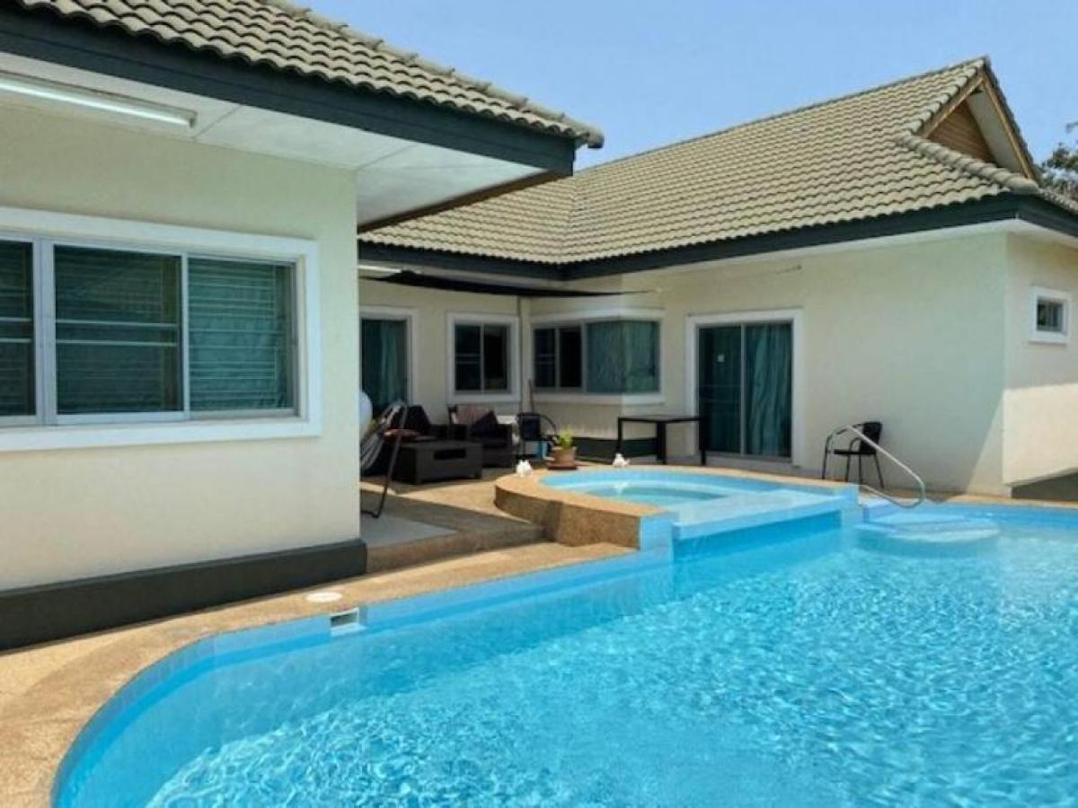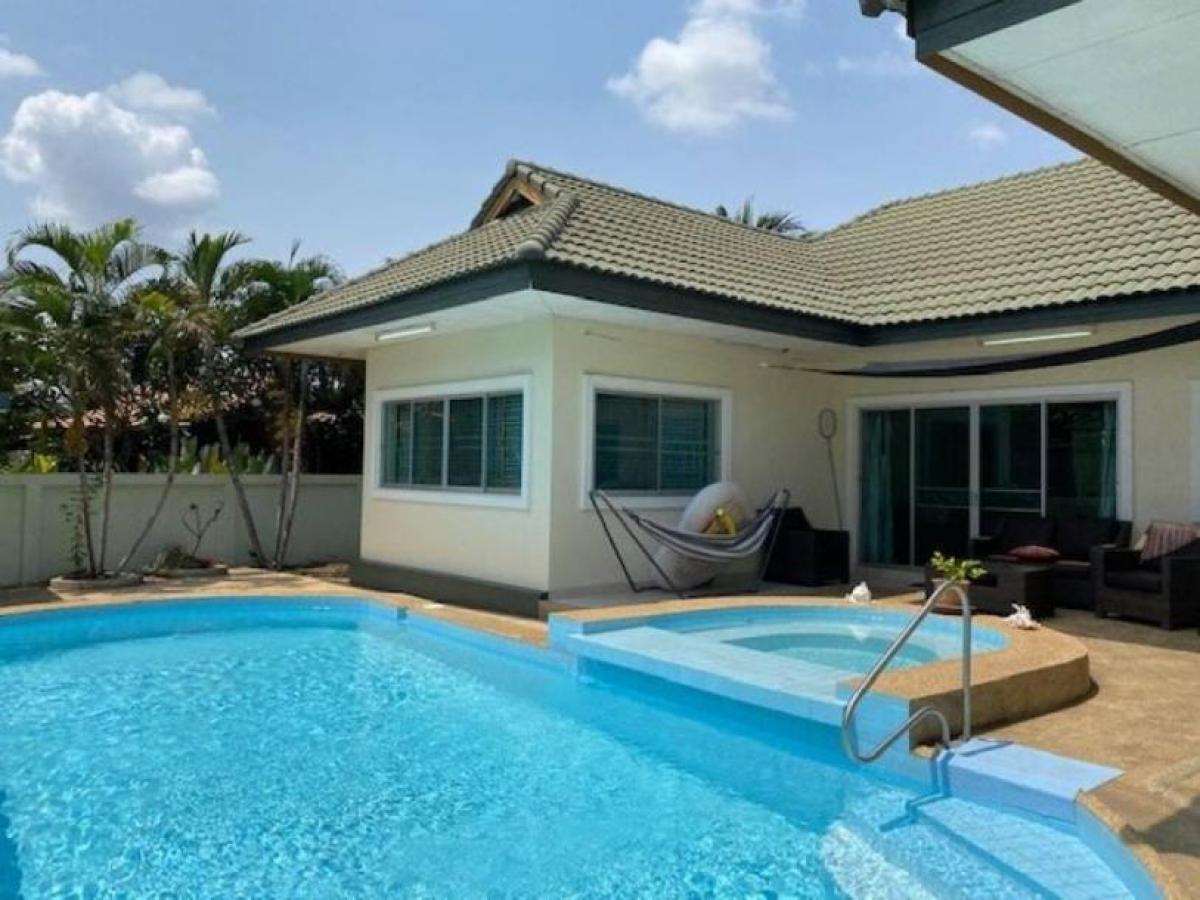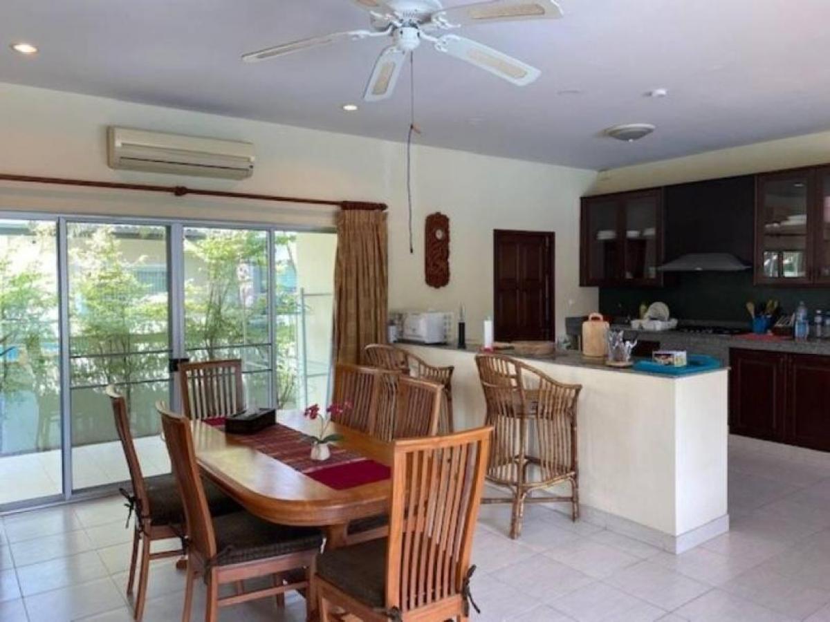 The villa features a very spacious open plan living, dining and kitchen, 3 bedrooms and 3 bathrooms. Outside is a good sized terrace beside the pool, gardens all around the villa and covered car parking. The Villa is within a small Development of Villas with no communal fees that is located next to Khao Tao Royal lake and 2 mins drive to the Beach and within walking distance to local cafes and restaurants. The villa is both for rent and for sale. Rental fee depends of time on year and length of stay, please contact us for a quote for your dates.-