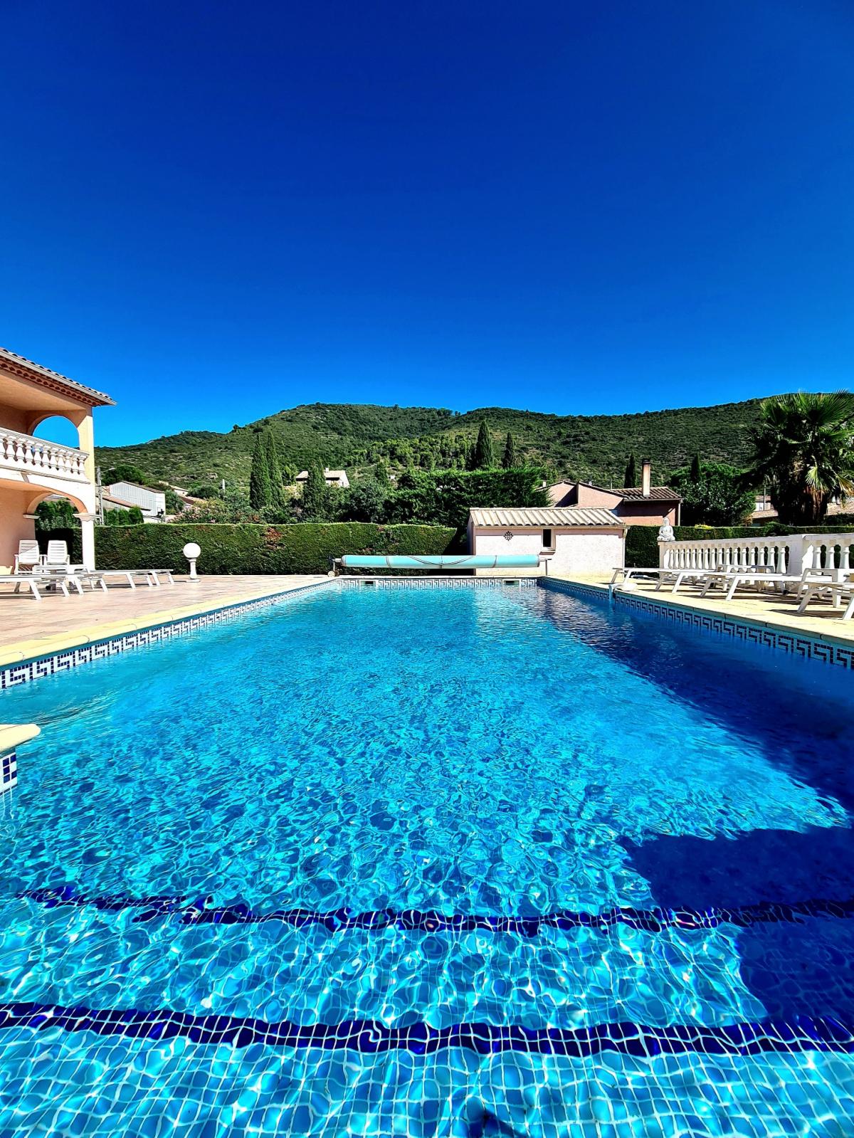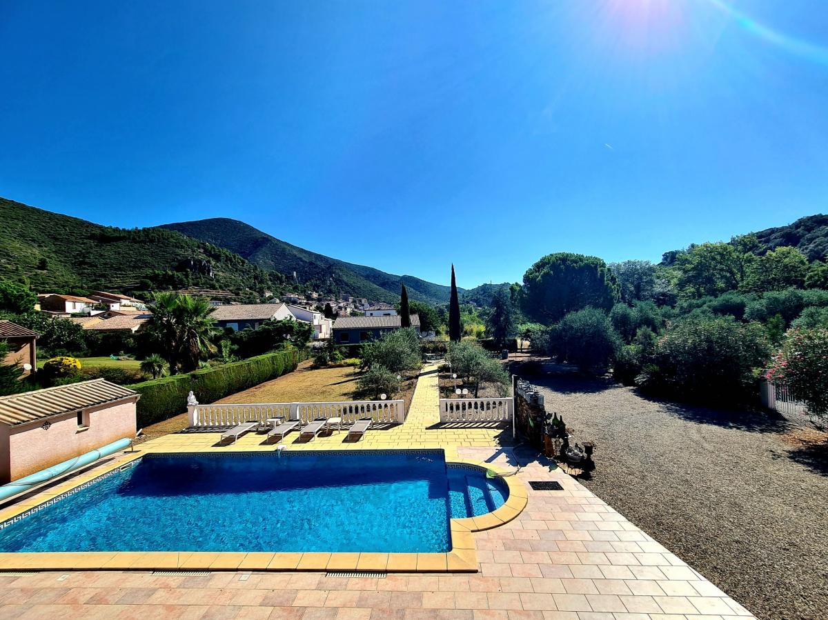 REDUCED in price - Beautiful villa from 1998 with a total living space of 248 m2, which could be divided into 2 apartments, offering 7 bedrooms, 3 bathrooms, 2 kitchens, 2 living room, an office area, a cellar, a garage, on a beautiful land of 2165 m2 with several olives trees and cypres trees, a petanque area, plus a vast terrace of more than 100 m2 with a large south facing pool with stunning views on hills. A haven of peace.- Location: Riverside village, one of the most beautiful in the Orb valley, with several restaurants, cafes, local artisans, grocery: located at 10 minutes from Cessenon-sur-Orb, 35 minutes from Beziers and 45 minutes from the beach.