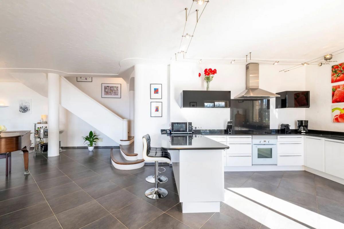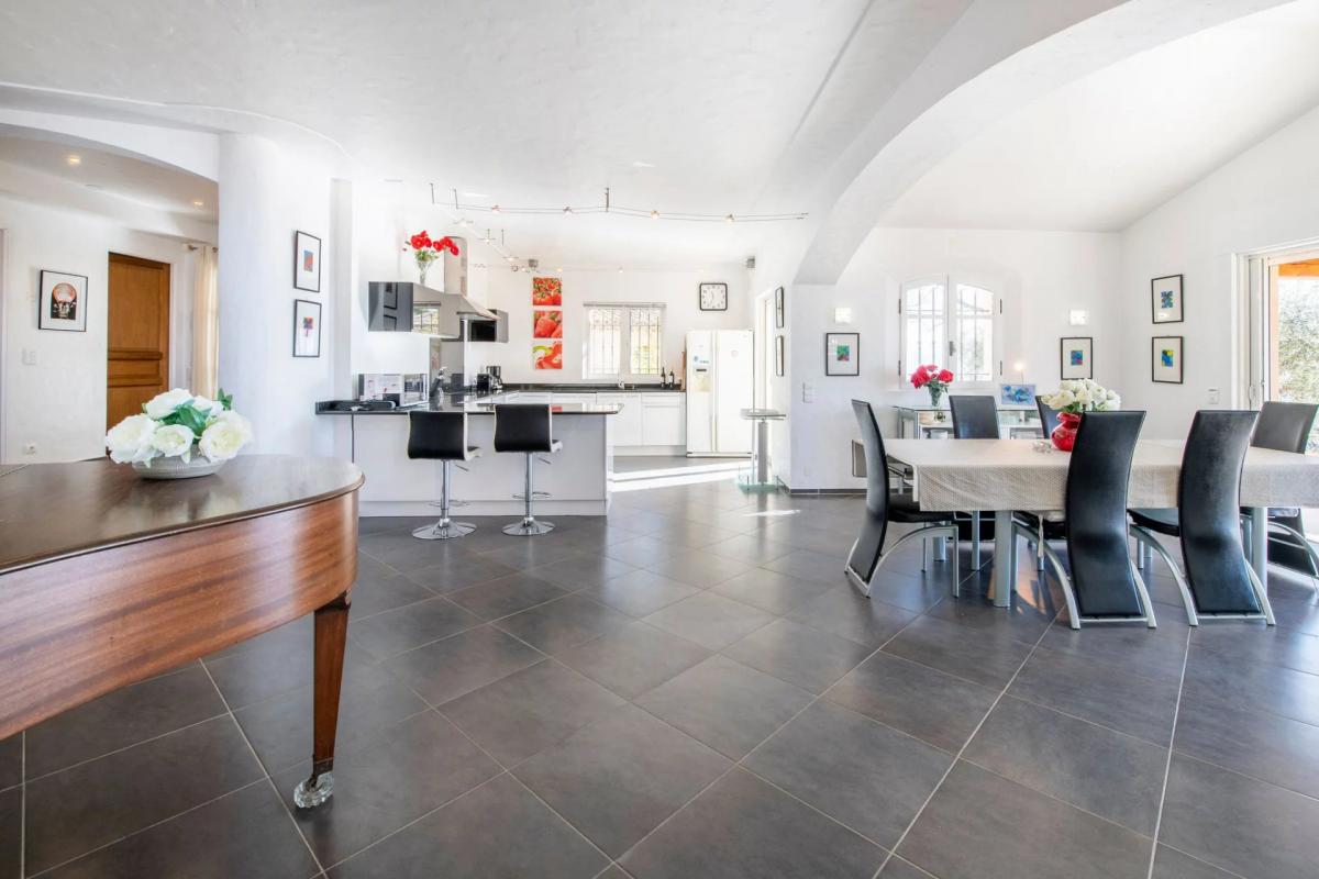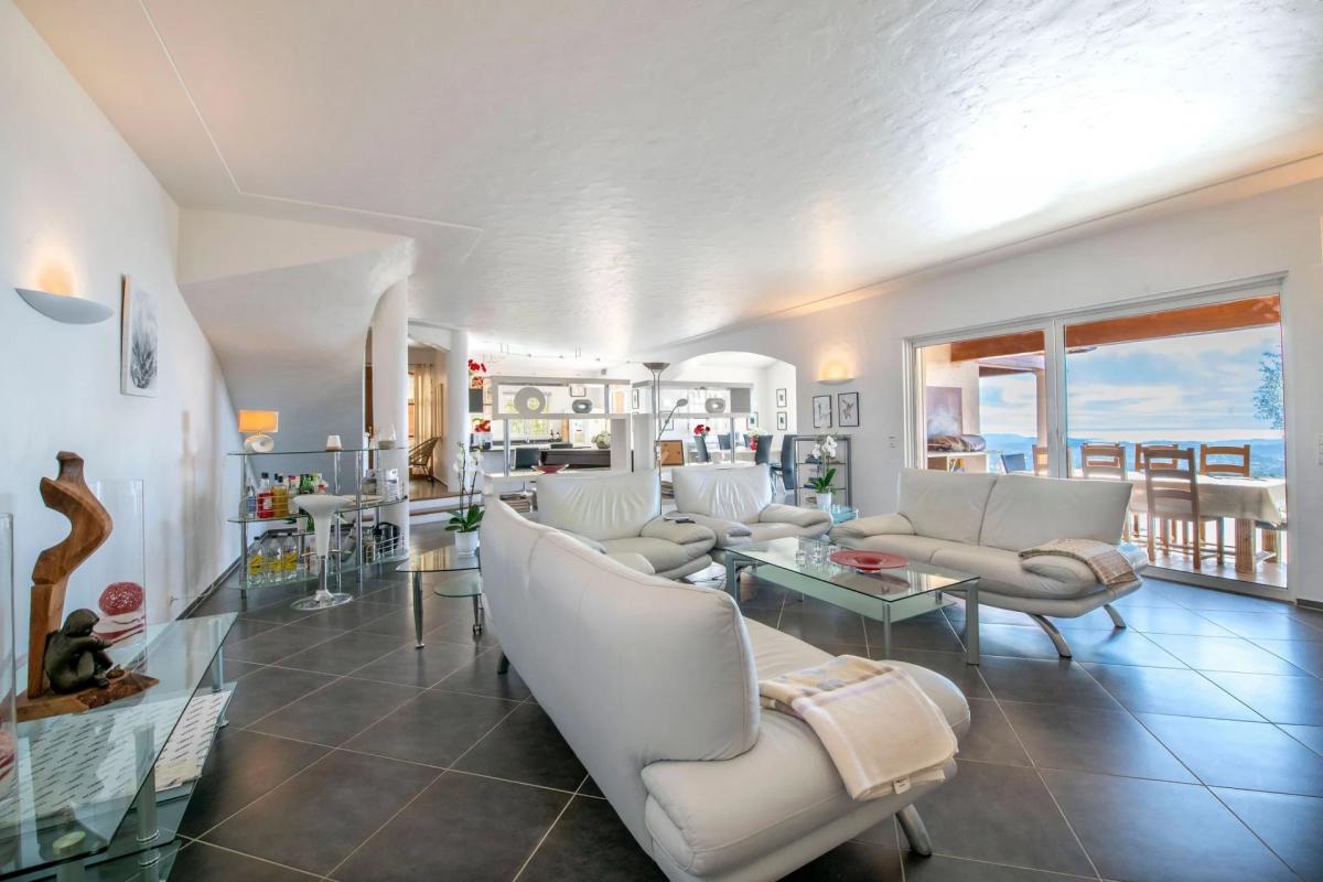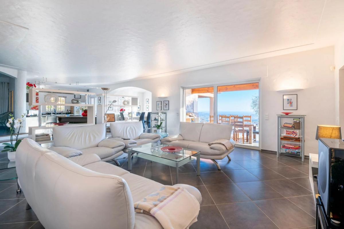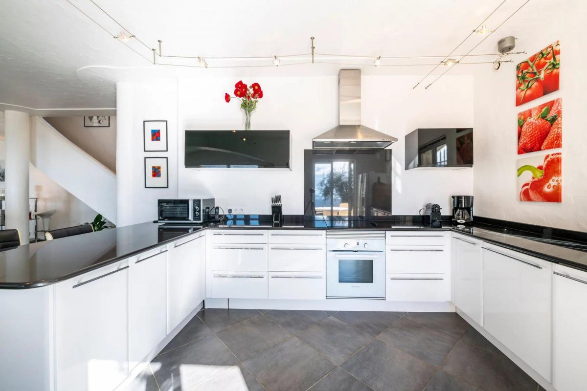 Comprised of five double bedrooms, four bathrooms, a laundry room and a spacious and welcoming kitchen. The dining and living areas feature bay windows and sliding doors that lead on to south-facing terraces, offering breathtaking views of the Cote d'Azur and the Mediterranean Sea.