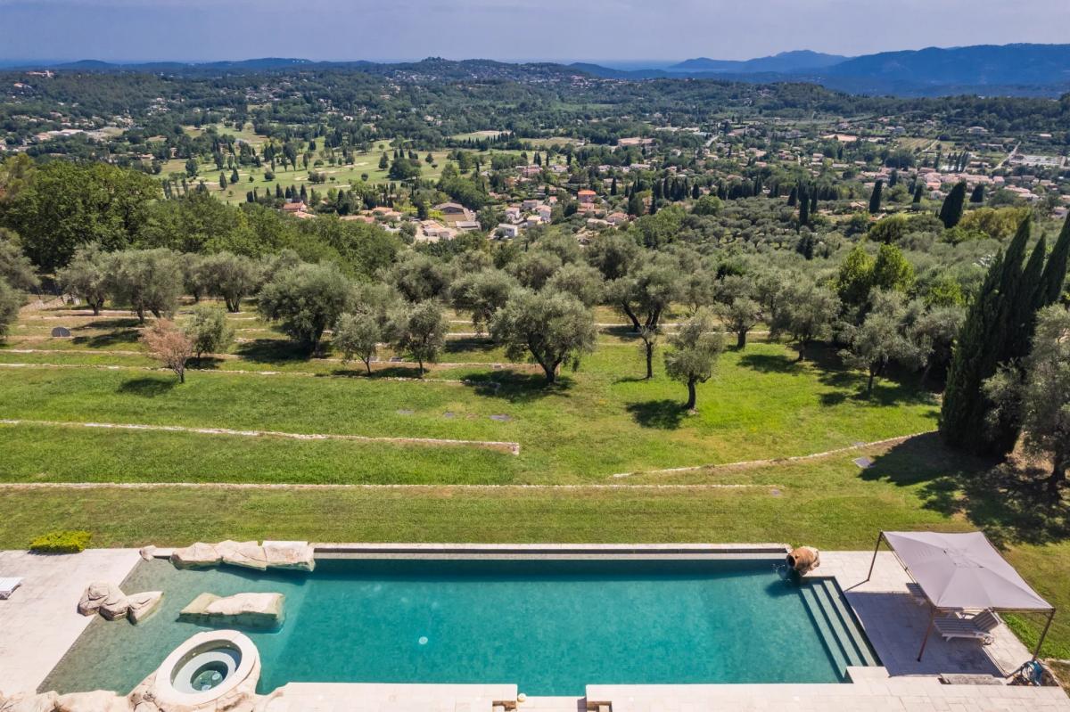 This beautiful property offers a unique setting and exceptional quality. Located on a olive grove just below the Medieval village of Chateauneuf de Grasse, 20 minutes from Cannes and the beaches, it enjoys a truly spectacular panoramic sea and countryside view as well as a beautiful view of the village. The property consist of a spacious entrance hall with cloakroom, a large living room with a stone fireplace, dining room and fully equipped kitchen with breakfast area and access to covered terrace with BBQ. Library/study with fireplace, 3 guest suites all with bathrooms and fitted wardrobes.