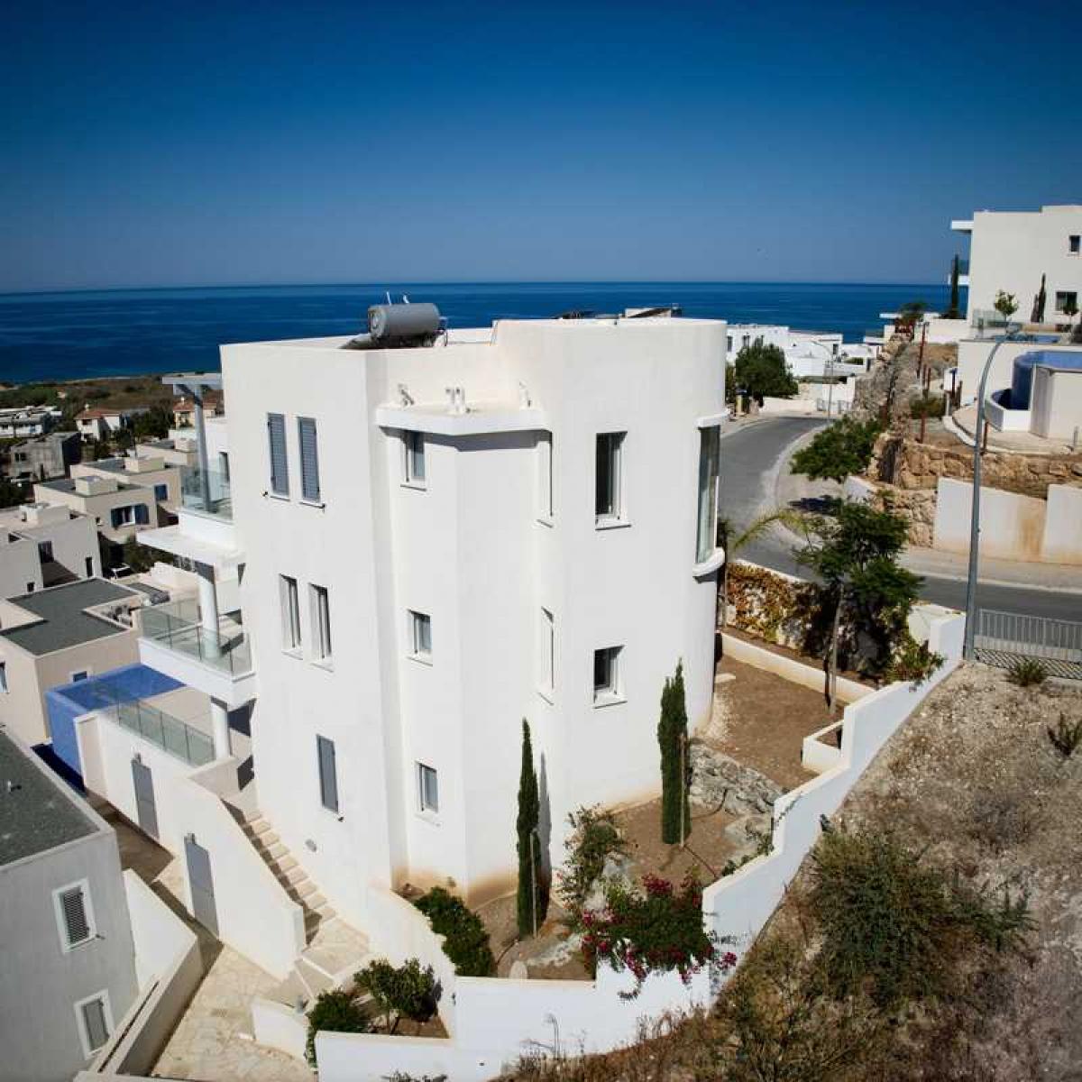 Key Ready!This luxurious 3-bedroom, 4-bathroom villa, nestled on a gentle Chloraka hillside outside Paphos, offers captivating sea vistas. Just 300 meters from the sea and near upscale beachfront resorts, it combines exclusivity with convenience. Designed for tranquillity and comfort, the project ensures essential services like asphalted roads, electricity, water, and drainage, providing a seamless living experience in this serene coastal environment.