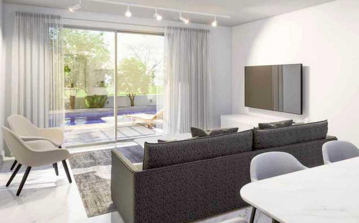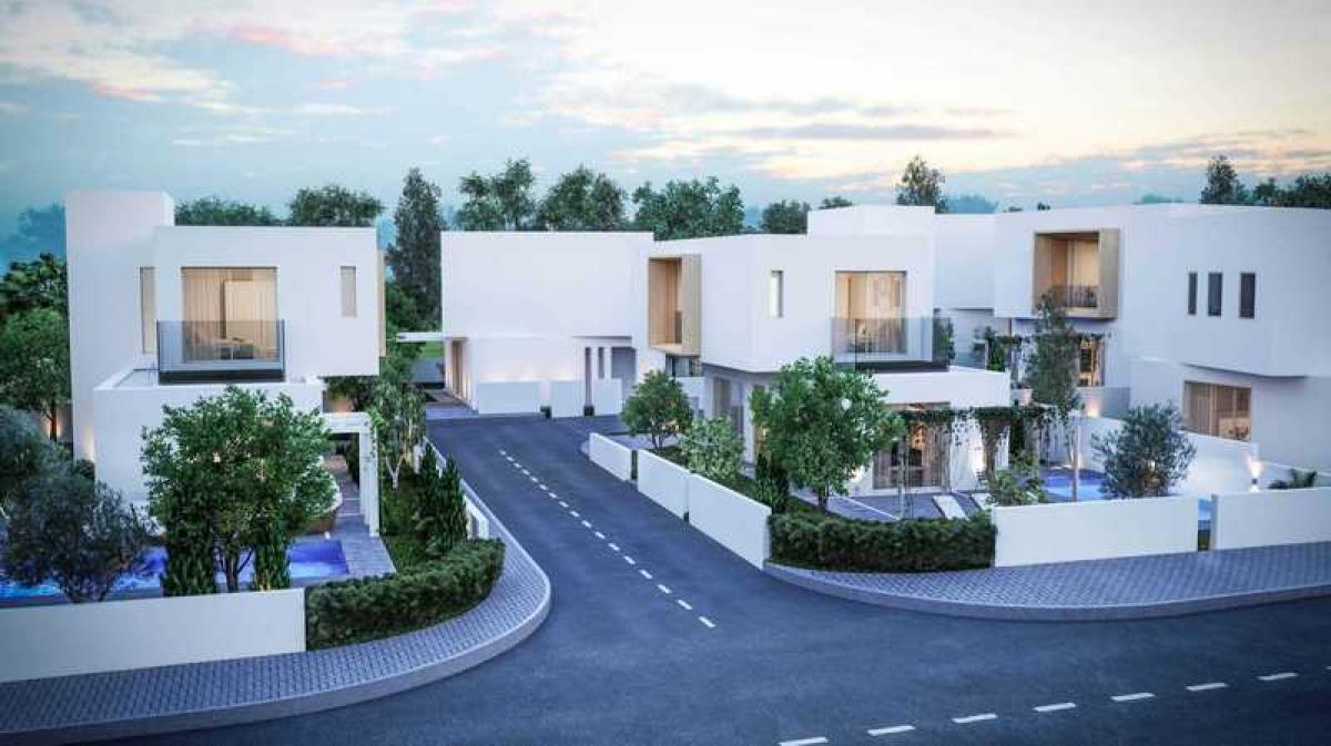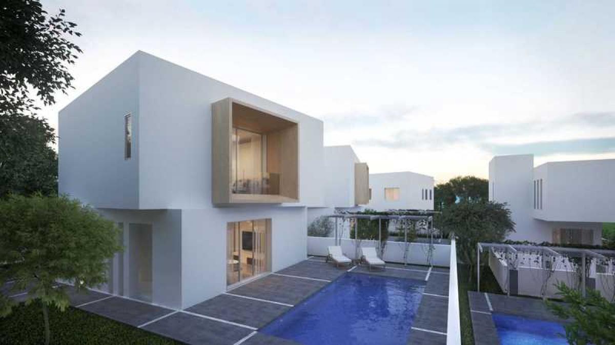 An excellent example of elegant living by the sea. This brand new development consisting of seven modern villas is located in Chloraka, in a green setting just 150m from the sea.Similar but not identical in terms of architectural lines and style to create an aesthetically appealing impression, each two-storey villa is based on a spacious 3-bedroom layout and open-plan living area. Step outside onto the patio to relax and cool off in your own private pool with surrounding sunbathing area. The seven villas are set on two levels, granting sea views from the bedrooms on the upper floor.