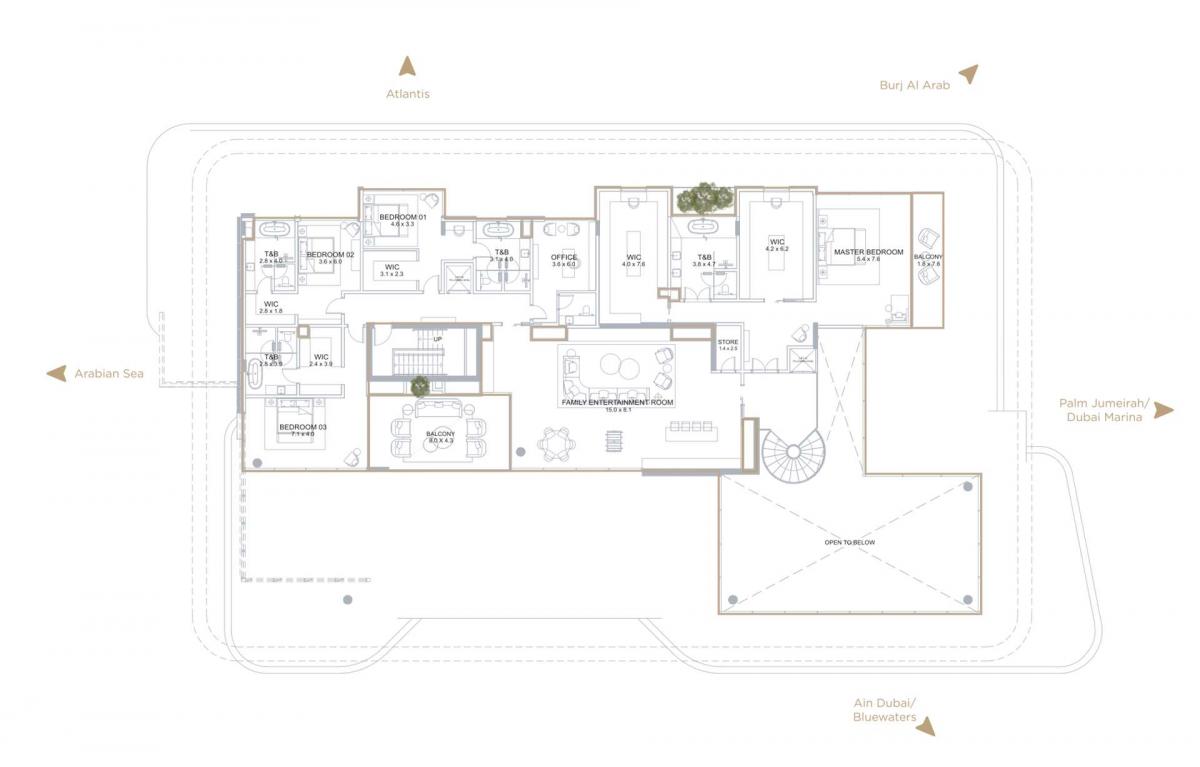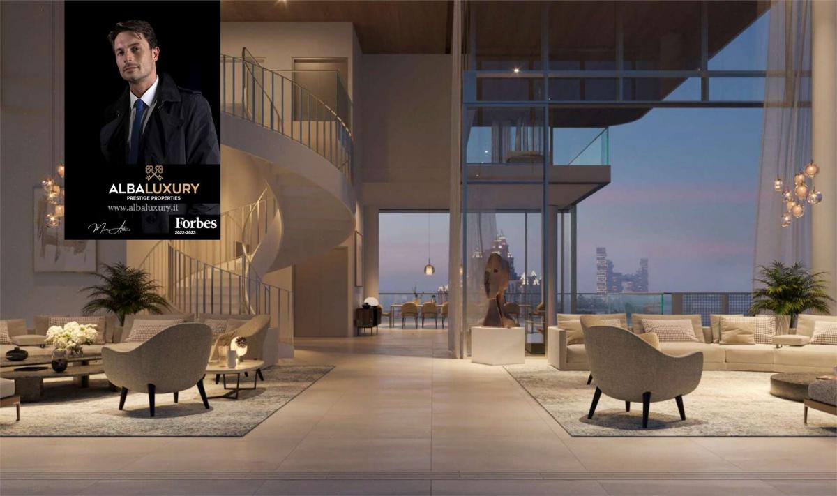 AED: 127.953.955^\u20ac: 32.350.000,00 ^Located on the Palm Jumeirah, this exclusive ultra-luxury complex named Serenia Living is characterized by a design and architecture that offer a unique experience in Dubai, with spacious interiors, large panoramic windows, refined design, high-end finishes, and luxury services.^We are pleased to offer you this wonderful and unique 1,017 sqm Sky Mansion duplex with 691 sqm of terraces. This luxurious Duplex offers an extraordinary 360\u00b0 view of the Palm Jumeirah, Burj Al Arab, the skyline, and the sea.^The property is characterized by high-quality finishes, a gym, a spa, and a private elevator for access to the residence. The exterior features green spaces, spacious communal areas, and a wonderful private outdoor pool.^Among the numerous services of this Ultra Luxury complex, you will find direct access to the private beach, a private cinema, spa, gym, golf simulator, Paddle courts, and numerous pools, all characterized by an elegant and exclusive atmosphere.,