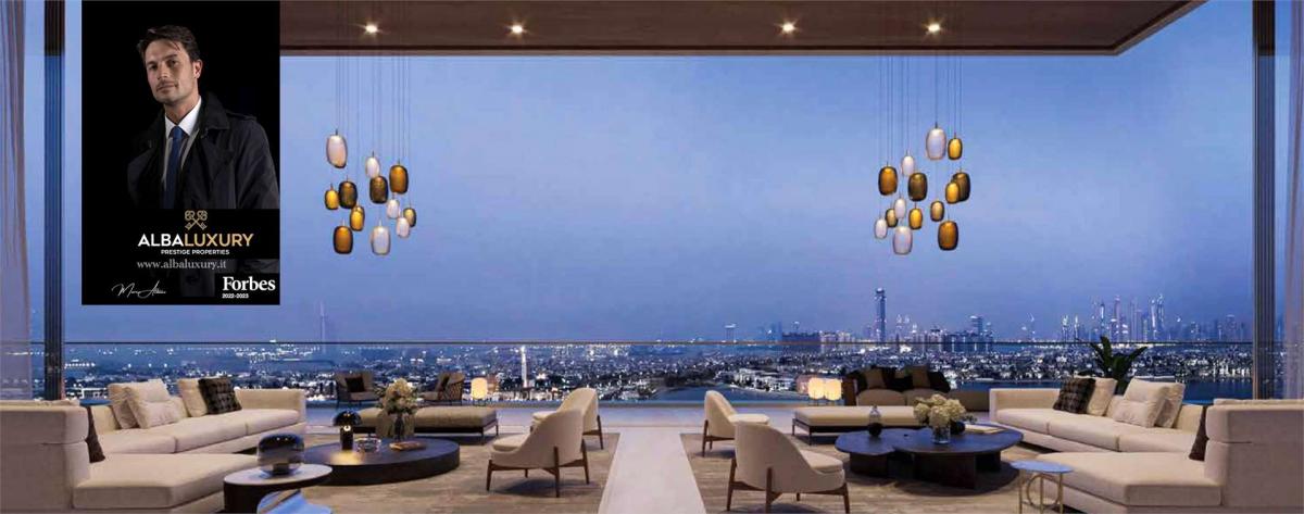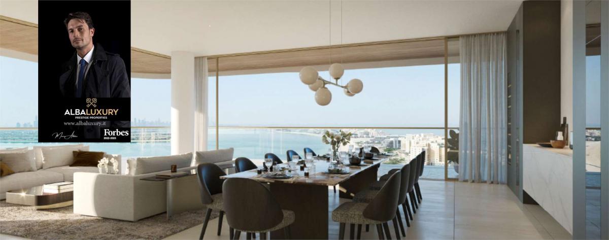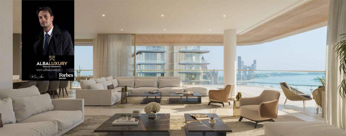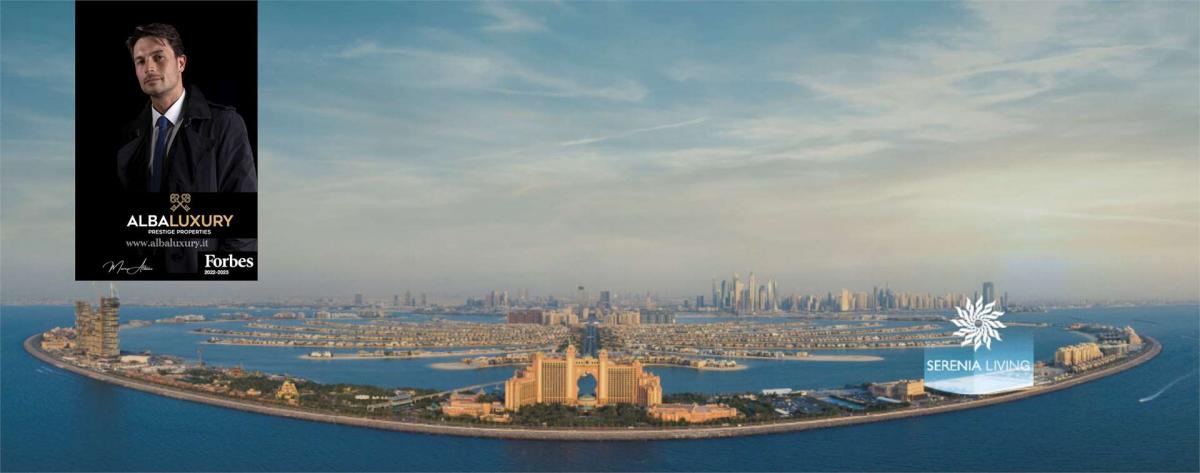 AED: 87.016.600^\u20ac 22.000.000^Located on the Palm Jumeirah in Dubai, this exclusive ultra-luxury complex called Serenia Living is characterized by a design and architecture that offers a unique experience in Dubai, thanks to spacious interiors, large panoramic windows, refined design, high-end finishes, and luxury amenities. Through a private elevator, you reach this magnificent presidential Penthouse of 866 sqm and 315 sqm of terraces. With high ceilings and spacious panoramic outdoor areas, this luxurious Penthouse offers an extraordinary 360\u00b0 view of the Palm Jumeirah, the Burj Al Arab, the skyline, and the sea. Among the numerous services of this Ultra Luxury complex, you will find direct access to the private beach, a private cinema, a spa, a gym, a golf simulator, paddle courts, and numerous pools, all characterized by an elegant and exclusive atmosphere.,