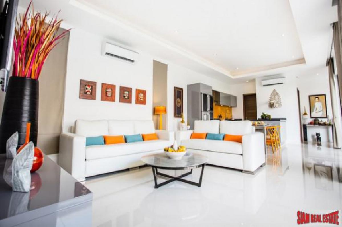 This beautiful two bedroom, two bath pool villa is located in the Palm Lakeside Villa Development. The home is a spacious 128 sqm on a large 400 sqm land plot and is currently being offered at a reduced price of 8,500,000 Baht.The villa comes with a spacious lounge, dining nook, guest toilet and a modern western kitchen. It is brightly decorated and built to a high standard. The bedrooms are situated on either end of the home and both have pool access and ensuite bathrooms with contemporary glass showers.