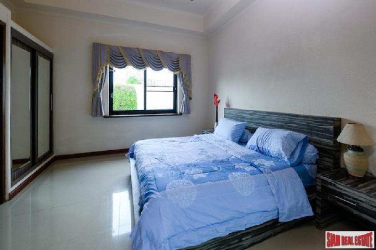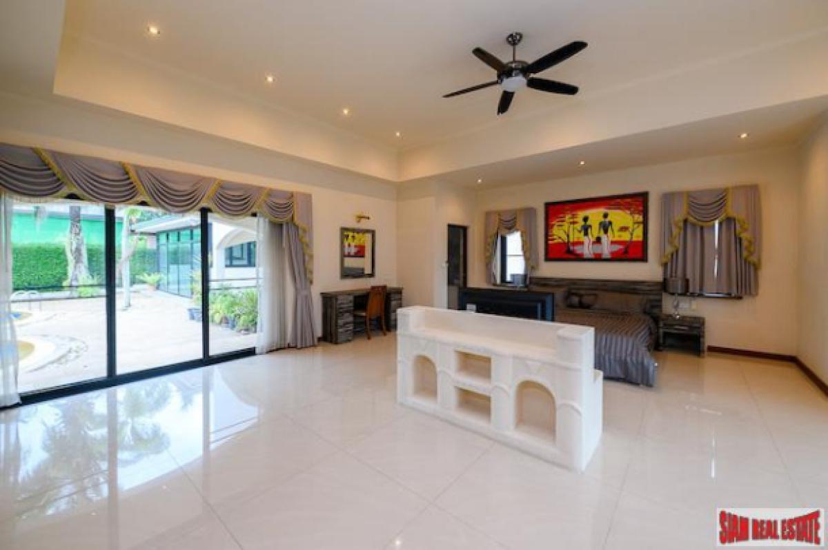 Impressive, tropical pool villa priced to sell at an incredible 17,400,000 THB in a company name. Santa Maria Estate, East Pattaya, is located just behind Lake Mabprachan. This is a luxury estate in a perfect golfera€™s location adjacent to the home of the Thailand LGPA event, Siam Old Course.This splendid Pattaya property offers boundless luxury, with a massive 550 sqm of living area on a 1200 sqm land plot. With six bedrooms and six bathrooms, this stunning family home comes fully furnished to a high standard. Featuring a top quality European standard kitchen, large living areas and a massive private swimming pool surrounded by lush lawns and gardens. In addition there is an enclosed wet bar area out next to the pool and waterfall, large roof top terrace, two car garage plus a large driveway and plenty of storage.