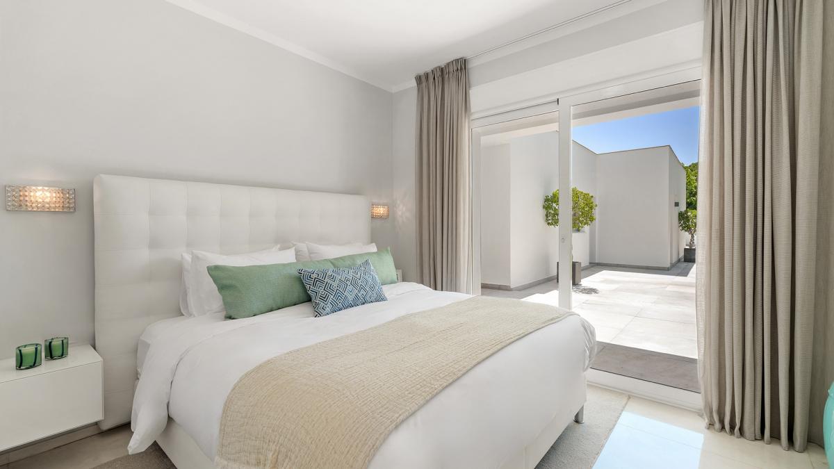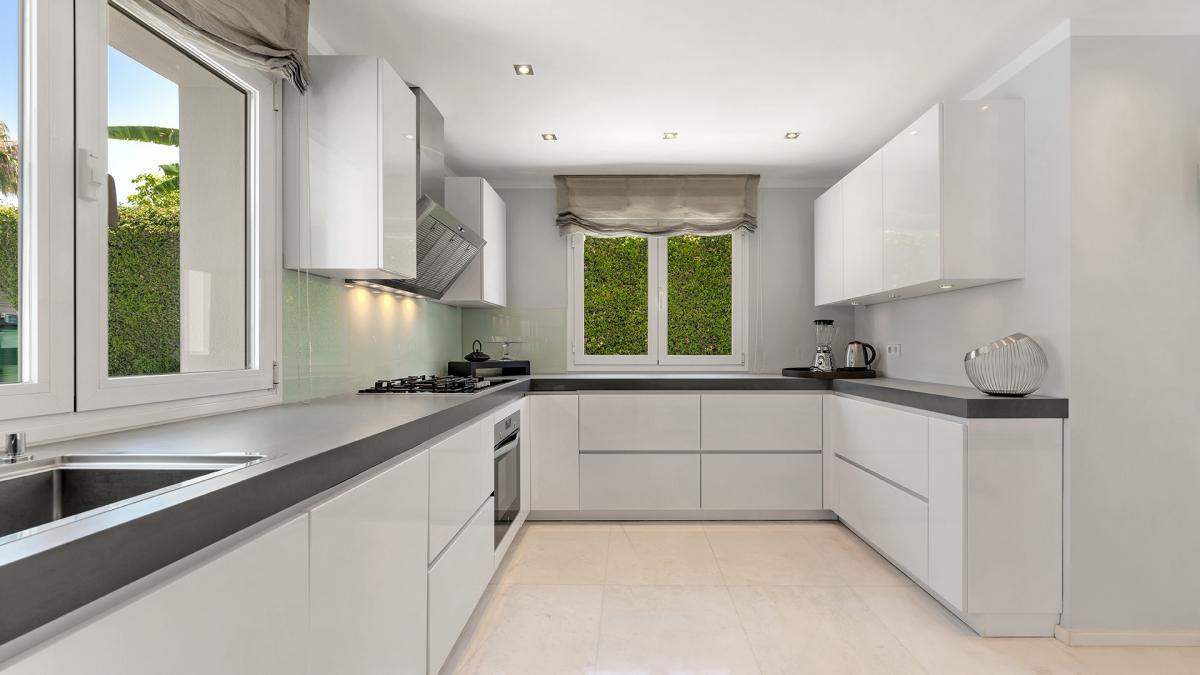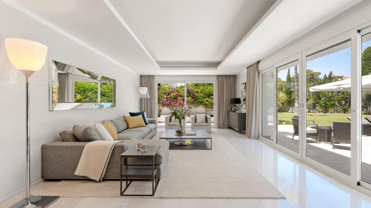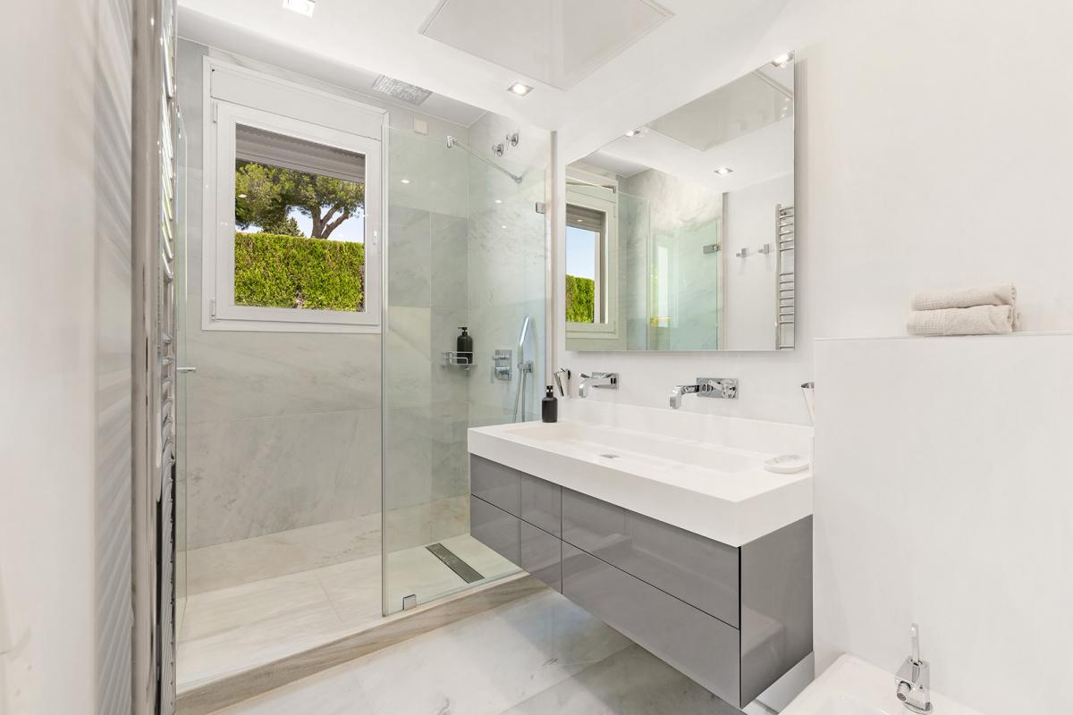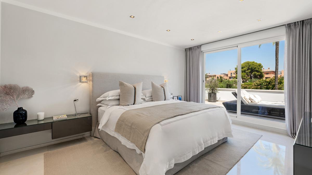 Casa Solara is an immaculately presented villa benefits from an excellent location 100m from the beach in Estepona's New Golden Mile. The villa showcases a beautiful blend of traditional Mediterranean styles with modern design elements, resulting in a home of timeless appeal and exceptional elegance. Arriving at the property, an automated gate opens allowing vehicles to enter directly into an enclosed 2-car garage with more space in the driveway. The landscaped gardens near the entrance provide a glimpse of the levels of luxury and quality to be found all throughout the property. Entering the villa through its front door, there is an entry vestibule that leads directly into a generously sized dining area and further into the exquisite living room. Large glass double doors in both spaces open to the garden and allow for sunlight to flow into the villa. The fully fitted modern kitchen is located to the right of the main entrance and boasts built-in high-end appliances, ample countertops and an adjacent laundry room. There is one guest suite on this level with garden access and a private bathroom, in addition to a home office room that can be converted into an additional bedroom. Upstairs there are three more bedrooms, including the spectacular master bedroom with its large dressing room and lovely views of the surrounding areas. The two guest suites have south-facing views toward the front of the home one including a sauna. All the rooms access the various terraces upstairs, and the entire main house benefits from underfloor heating. The property also has a domotic system with touch screens installed and a full security system with an array of cameras and sensors. Outside, the home presents a marvelous pool area, surrounded by ample lawns and space to sunbathe, and overlooked by a pool bar complete with a summer kitchen and seating areas. To the other side of the pool is the guest house, which is comprised of two bedrooms, a living room, and a fully fitted kitchen.The guest house showcases the same luxurious qualities as the rest of the villa and has its own separate entrance and terrace. The seventh bedroom of the estate is located just off the garage and has its own kitchenette and bathroom, making it ideal as service or guest quarters. The guest house is also fitted with underfloor heating. Since this is a double plot there is the possibility to extend the house or in fact build a new house in the second plot. The pristine estate is located in a tranquil part of El Paraiso Barronal, just 150m from the beach. The area is near a wide range of amenities including shops, restaurants, and international schools. Several top golf courses are within a short distance, and by car, the centres of both Estepona and Marbella are 10 minutes away while Malaga airport is 45 minutes drive.