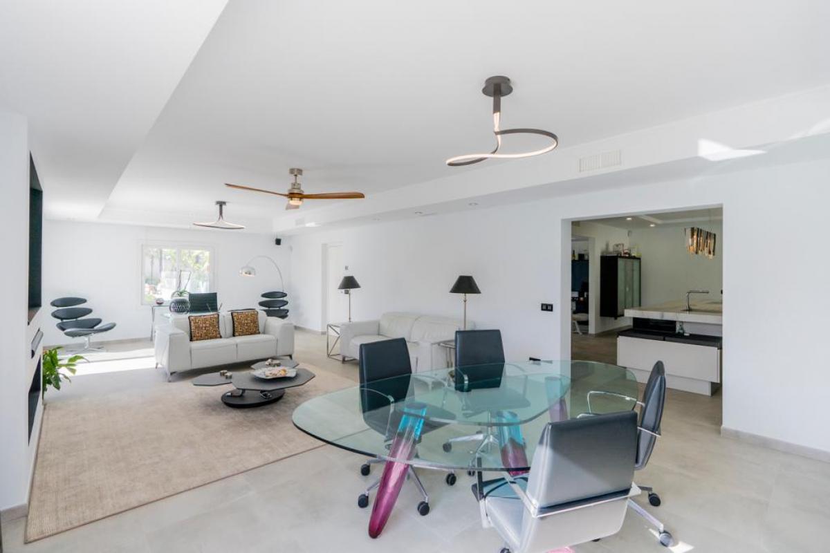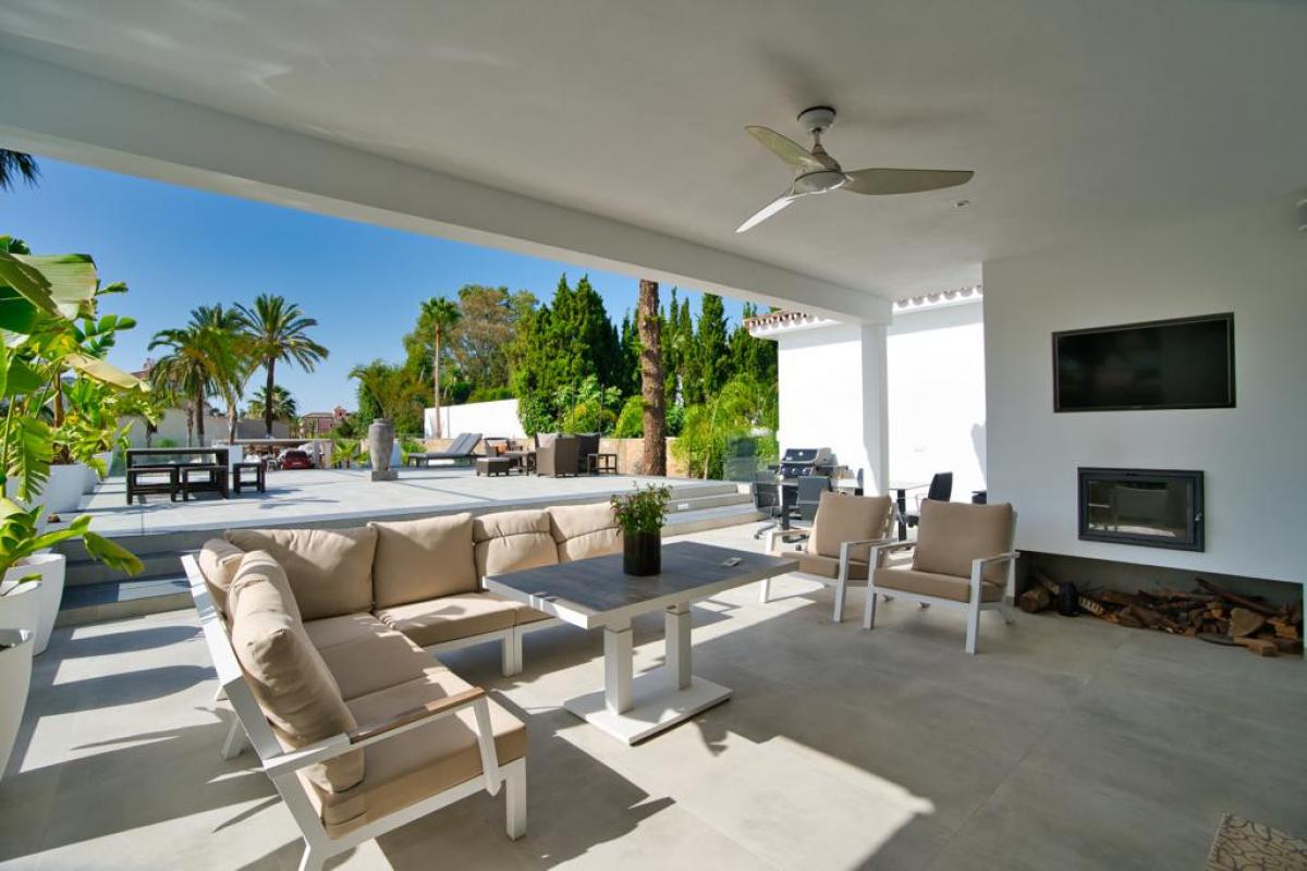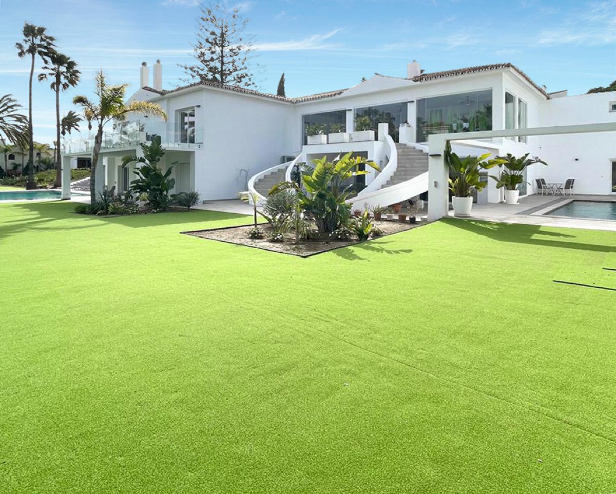 This magnificent newly refurbished luxury villa is ideally situated in a tranquil area of Atalaya Golf with golf course and a clubhouse just meters away. integrally upgraded throughout, the home boasts the highest quality finishes in every detail and is beautifully presented in a Mediterranean style exterior blended with a contemporary style interior. The property is distributed over two levels and boasts ten beautifully refurbished bedrooms with eleven bathrooms including the guest house with its own pool and chill-out outside area, while outside is the landscaped easily maintained garden.The home is entered on its upper level where an entrance hall leads greets residents and immediately gives away the levels of refinement that await inside. This level is comprised of two ample living rooms and the designer kitchen which is fully fitted by Poggenpohl. Directly outside is the ample main terrace that also features double stairs leading down to the garden and pool area. The separate guest house with three bedrooms is also accessed from this floor of the villa, not to forget the studio with bedroom and bathroom as well as a study/work room. The lower level of the home is tastefully distributed over six bedrooms, all with en-suite bathrooms, including the two master bedrooms that feature generous sized terraces of 72 and 36 square meters respectively. The amenities on this level of the home also include a media/entertainment room, massage room, gym space, infrared sauna and another complete bathroom adjacent to the wellness area. There is a lift connecting both floors of the villa and there is parking for 5 to 6 cars (3 under the pergola) as well as garage with two spaces.The garden that surrounds this spectacular home makes the very most of the mild climate of the Costa del Sol and opens to a 95 sqm pool around which there is abundant terrace space (upper 164 sqm and lower level of 83sqm) overlooking a fantastically landscaped green area with a grass tennis court. Located in Atalaya, the home is within a short drive of the best golf courses and beaches in the area. Puerto Banus can be reached in 10 minutes while Marbella is 15 minutes away.
