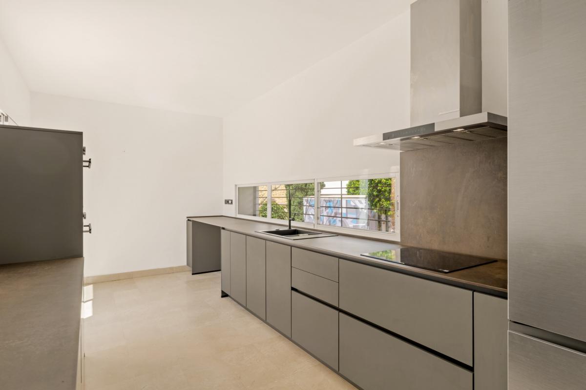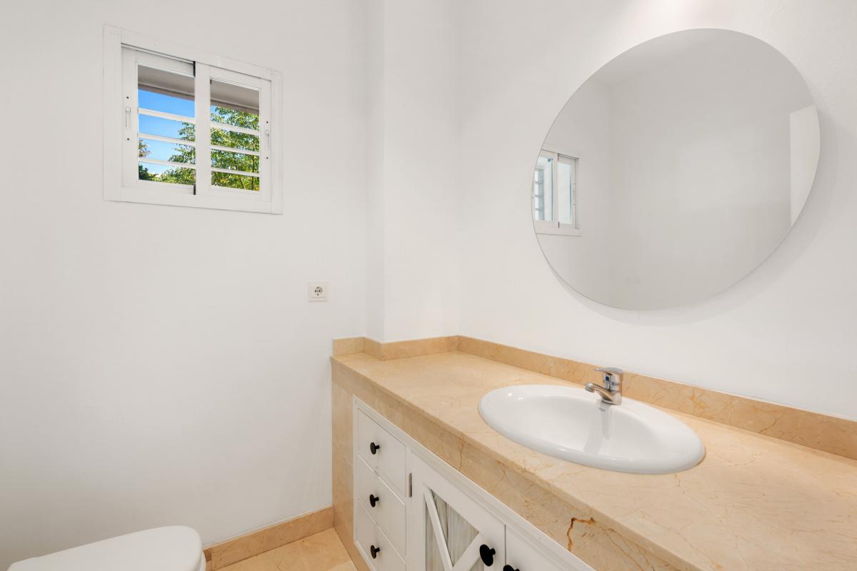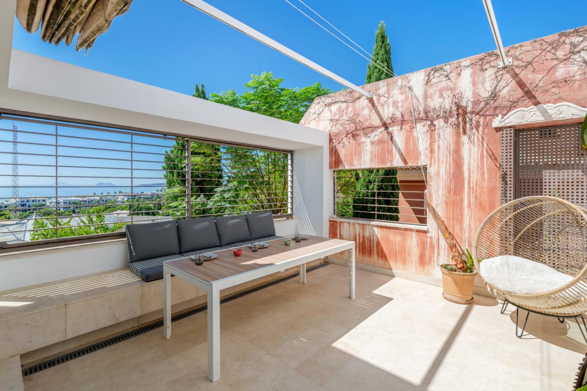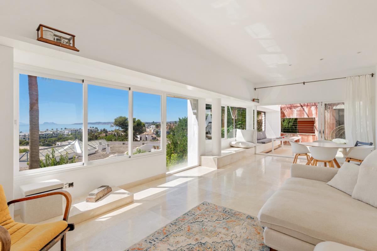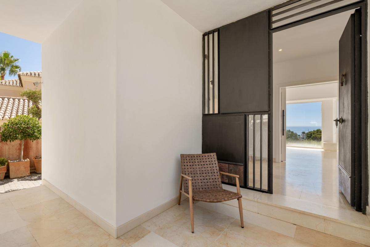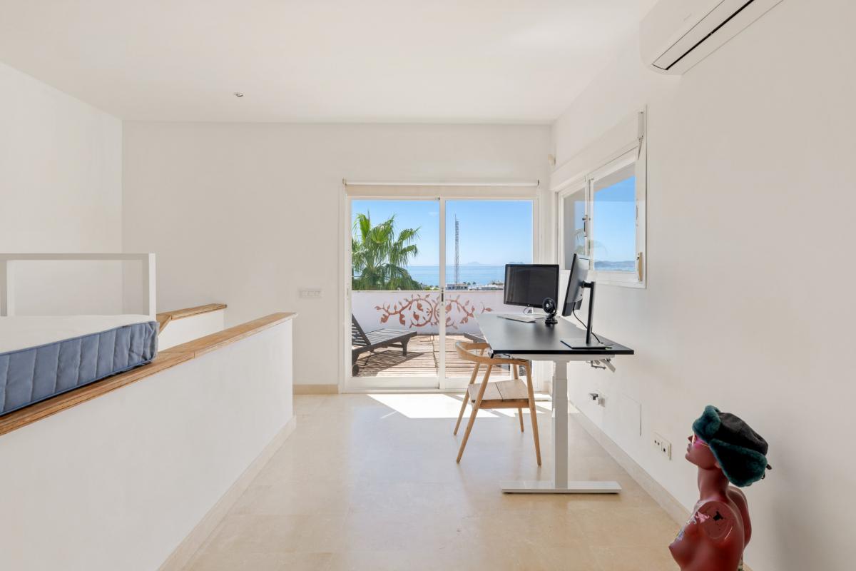 This exceptional modern villa is located in the prestigious and highly sought-after residential area of Seghers, just 300 meters from the beach and within walking distance to Estepona Town. Combining elegance, space, and unmatched sea views, this property offers a rare opportunity to live in one of Esteponas most desirable and well-established neighborhoods.The villa is accessed via its middle floor, where a charming front porch leads you into a bright and spacious living room. Large windows frame breathtaking views of the Mediterranean Sea, the Estepona coastline, and the Rock of Gibraltar, creating a truly impressive setting. This main living space also includes a dining area and opens directly onto a sunny terrace, ideal for relaxing or entertaining with the sea as your backdrop. The modern kitchen, fully equipped with contemporary appliances, also enjoys direct access to the terrace. A guest toilet is conveniently located on this level.Upstairs, a versatile room functions as either a bedroom or an office, complete with a fully fitted bathroom and direct access to the rooftop terrace. From here, you can enjoy the most spectacular views the property has to offer, stretching along the coast and out over the sea.One level below the entrance floor is dedicated to the sleeping quarters. This level features two guest bedrooms sharing a full bathroom, and a main bedroom with an en-suite bathroom and direct access to the garden. A laundry room and a separate TV room are also located on this floor, with the TV room offering access to a large basement area. While the basement currently requires renovation, it offers exciting potential for a gym, home cinema, or additional guest accommodation.Outside, the property is surrounded by a private garden filled with mature fruit trees and enjoying uninterrupted sea views. A small heated swimming pool adds to the year-round comfort and charm of the outdoor space, making it a perfect spot for relaxation in all seasons.Although the home presents some elements in need of updating, it offers strong fundamentals and an exceptional location that make it a unique opportunity to create a dream residence. Seghers is a quiet, family-friendly urbanization primarily made up of private villas, with very few properties currently on the market. it enjoys direct access to the newly extended coastal promenade, ideal for walking or cycling, which leads to Estepona Marina. The port area offers a wide range of activities including waterfront restaurants, cafs, and water sports such as scuba diving, jet skiing, and sailing. From here, the charming historic old town and its vibrant plazas are just a short walk away.By car, Puerto Bans is just 20 minutes away, and Mlaga Airport can be reached in under 50 minutes via the nearby toll road.This is a rare chance to acquire a villa in one of Esteponas most coveted areasideal as a permanent residence, a holiday retreat, or an investment with strong rental potential.