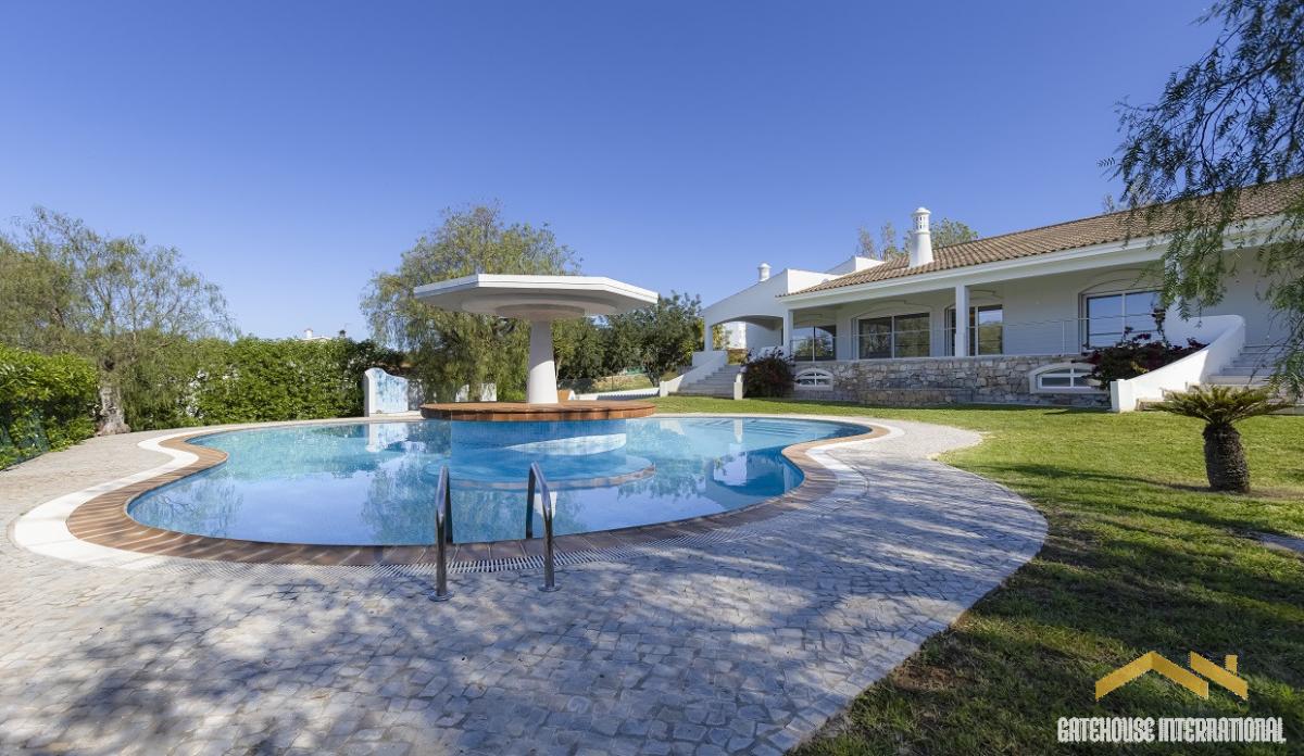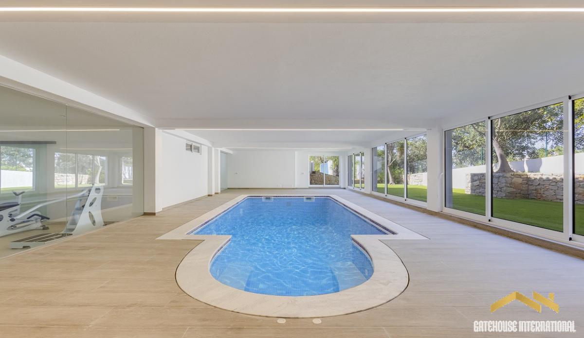 Sea View 6 Bed Villa With indoor & Outdoor Pools in Estoi Algarve - this 4 bed villa has an additional 2 bedroom basement area with a large garage area also, all within a plot of 2,700m2 with both outdoor and indoor pool. The villa features four well-appointed bedrooms on the ground floor, of which two are en suite, ensuring privacy and convenience. Additionally, there are two more bedrooms located in the expansive basement, perfect for guests or extended family. Each bedroom is equipped with built-in wardrobes, offering ample storage space. At the heart of the villa is a luxurious open-plan kitchen, complete with a large pantry to satisfy all culinary needs. The kitchen leads into a large living room, which boasts a cozy fireplace and opens onto a south-facing terrace. Every room in the villa is equipped with air conditioning A dedicated laundry room adds to the convenience of daily living. The villa is designed to cater to all modern needs while maintaining a warm and welcoming atmosphere. The large basement is a highlight of this property, featuring not only two additional bedrooms and a bathroom but also an array of leisure facilities. An indoor pool and a gym offer the perfect setting for relaxation and fitness. Furthermore, the basement includes a large garage and additional space for a game room, ideal for hosting gatherings or family entertainment. Set on a land area of 2,700m2 with a villa construction area of 851m2, the property offers two gated entrances, providing security and ease of access. The expansive grounds offer plenty of space for outdoor activities, gardening, or simply enjoying the serene countryside views.Features