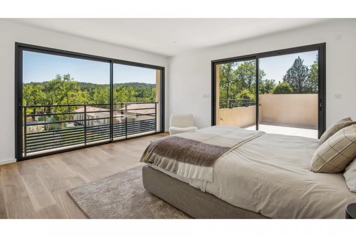 im Erdgeschoss befindet sich eine elegante Master-Suite mit eigenem Bad. im Obergeschoss bieten drei weitere Schlafzimmer - jeweils mit Bad en suite - hochsten Komfort und Privatsphare.