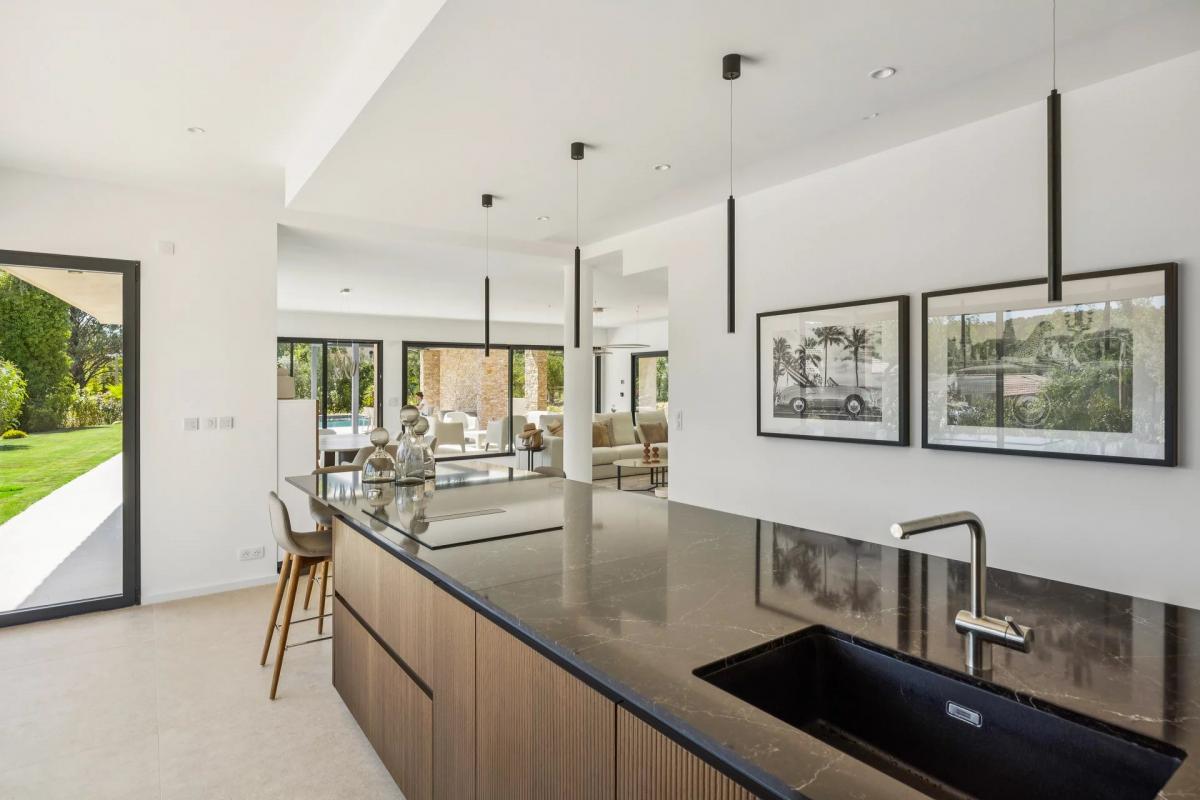 From the moment you step inside, a spacious and light-filled living area welcomes you, flowing seamlessly into a fully equipped open kitchen ideal for stylish entertaining. Expansive terraces extend the living space outdoors, offering a peaceful setting surrounded by nature.