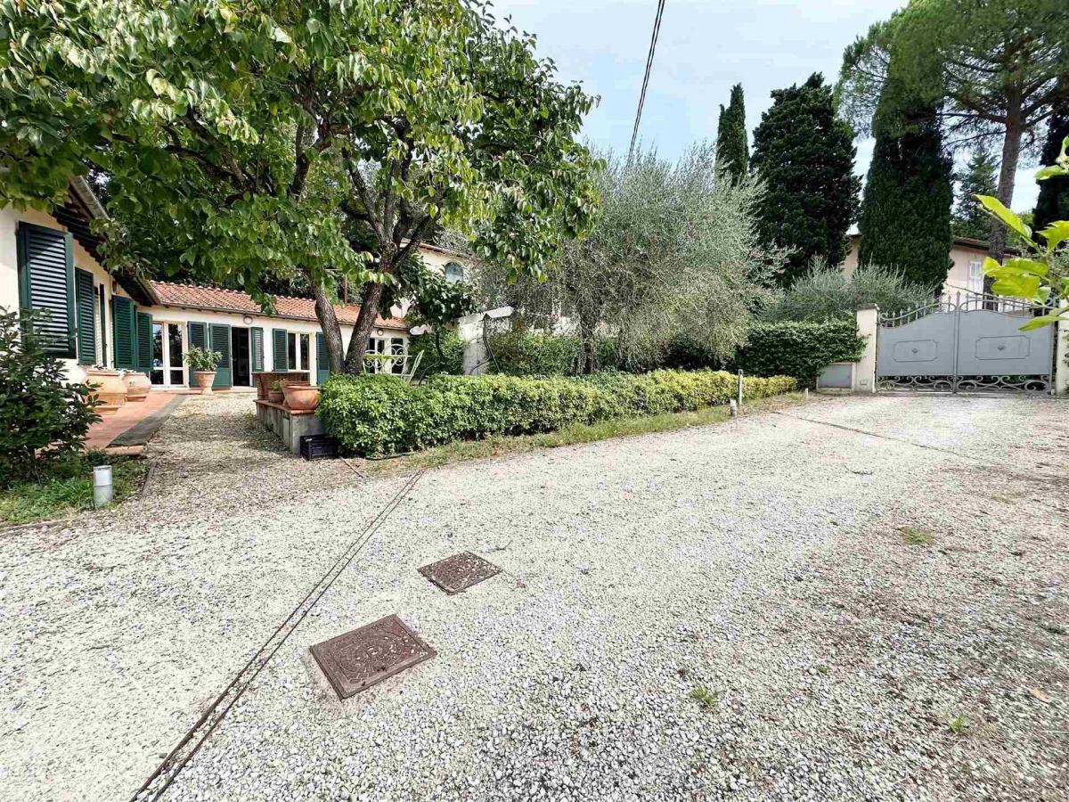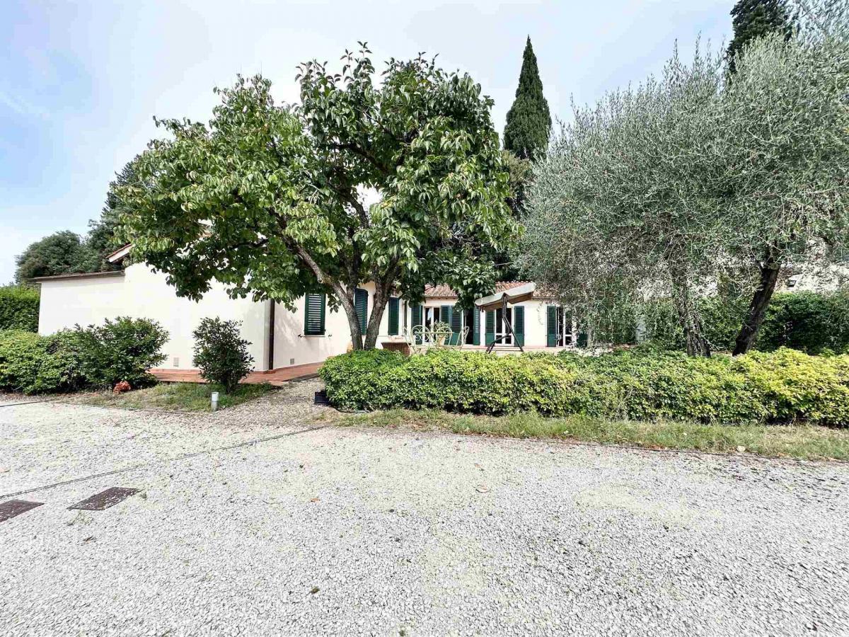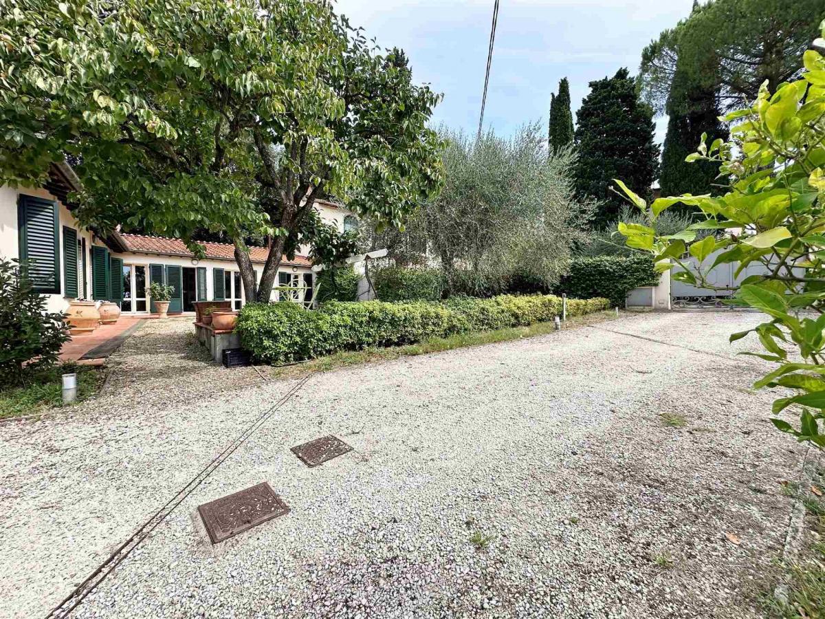 The property is surrounded by a beautiful 400 sqm private garden, a true haven for relaxation, outdoor dining, and leisure. A paved courtyard, a cultivated olive grove, and a 20 sqm covered parking space complete the residence. The villa has been well maintained, with the roof and facades renovated in recent years, and features autonomous heating. This is the perfect choice for those seeking comfort, space, and tranquility within easy reach of central Florence.