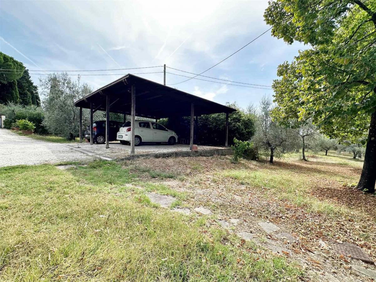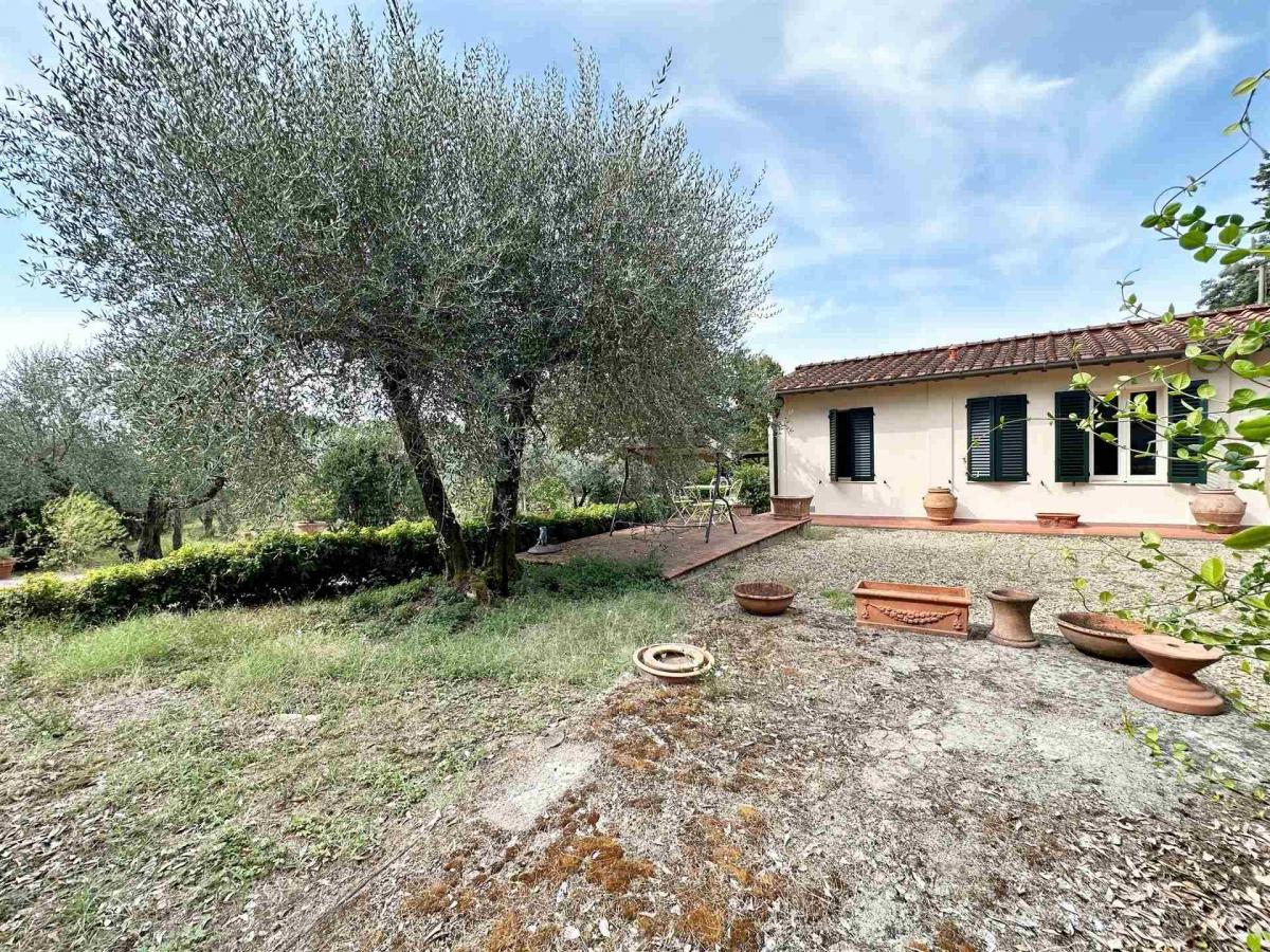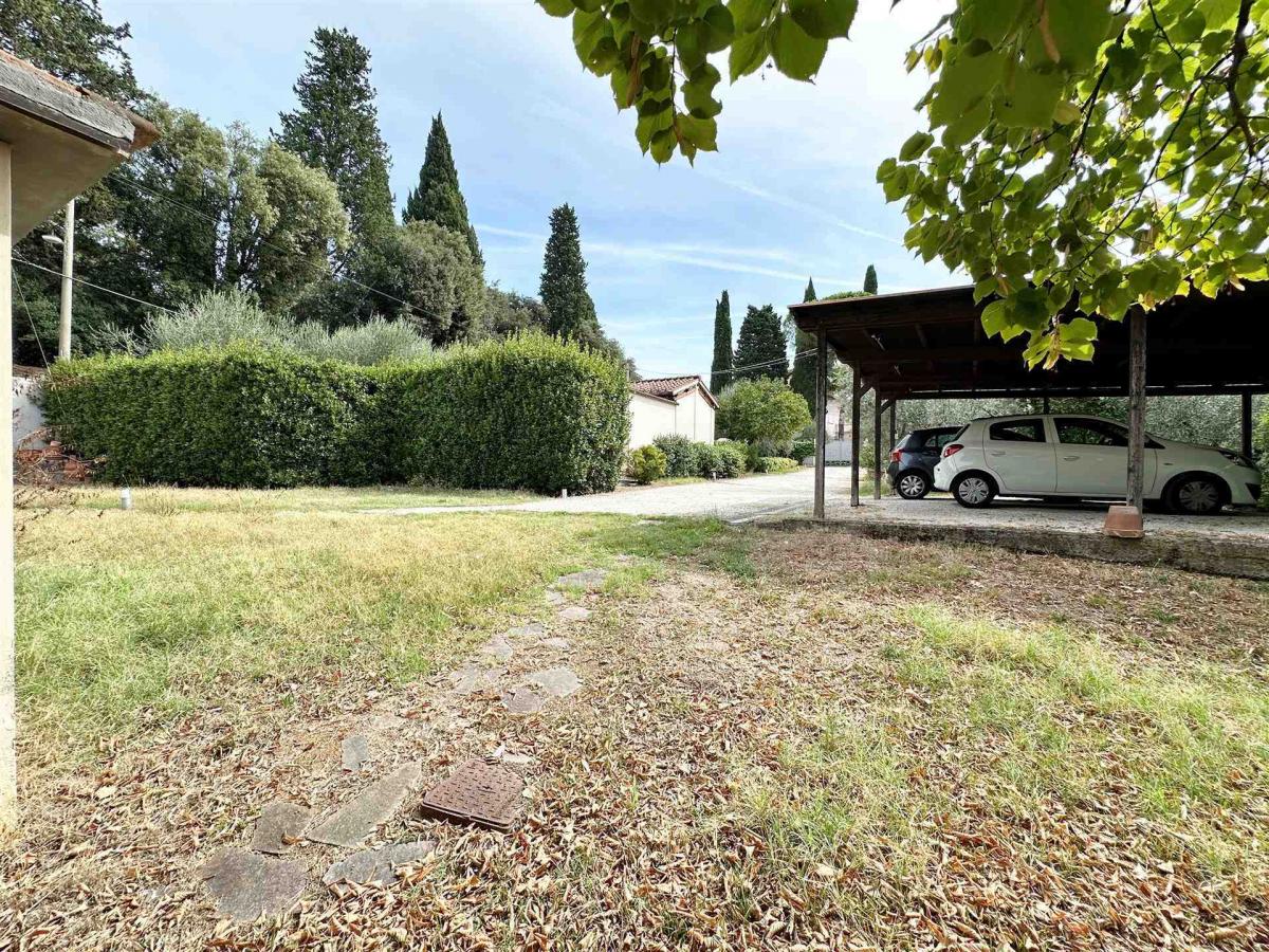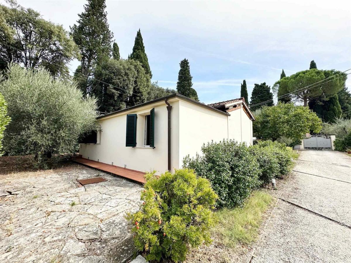 The property is surrounded by a beautiful 400 sqm private garden, a true haven for relaxation, outdoor dining, and leisure. A paved courtyard, a cultivated olive grove, and a 20 sqm covered parking space complete the residence. The villa has been well maintained, with the roof and facades renovated in recent years, and features autonomous heating. This is the perfect choice for those seeking comfort, space, and tranquility within easy reach of central Florence.