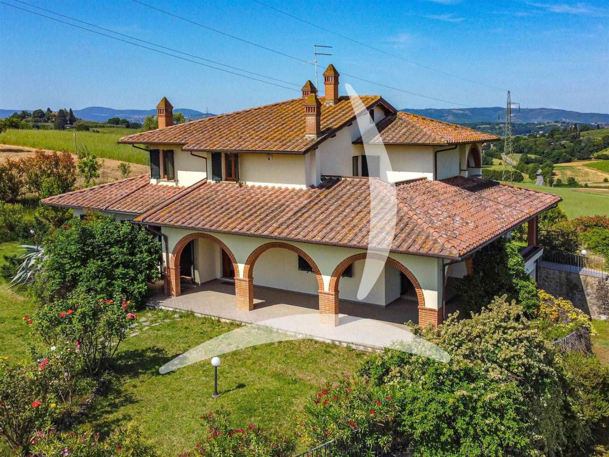 The garden surrounding the villa is truly a paradise, with 10,000 sqm of land fully illuminated, fenced, and equipped with a computerized irrigation system. The garden is beautifully landscaped with pathways, flowerbeds, lawns, and tall ornamental trees. Additionally, there is an artesian well and automated gates. The external porch, with masonry arches and wooden beams, houses a bread oven and a barbecue. The outdoor spaces are ideal for relaxing or hosting guests in a peaceful and private setting.