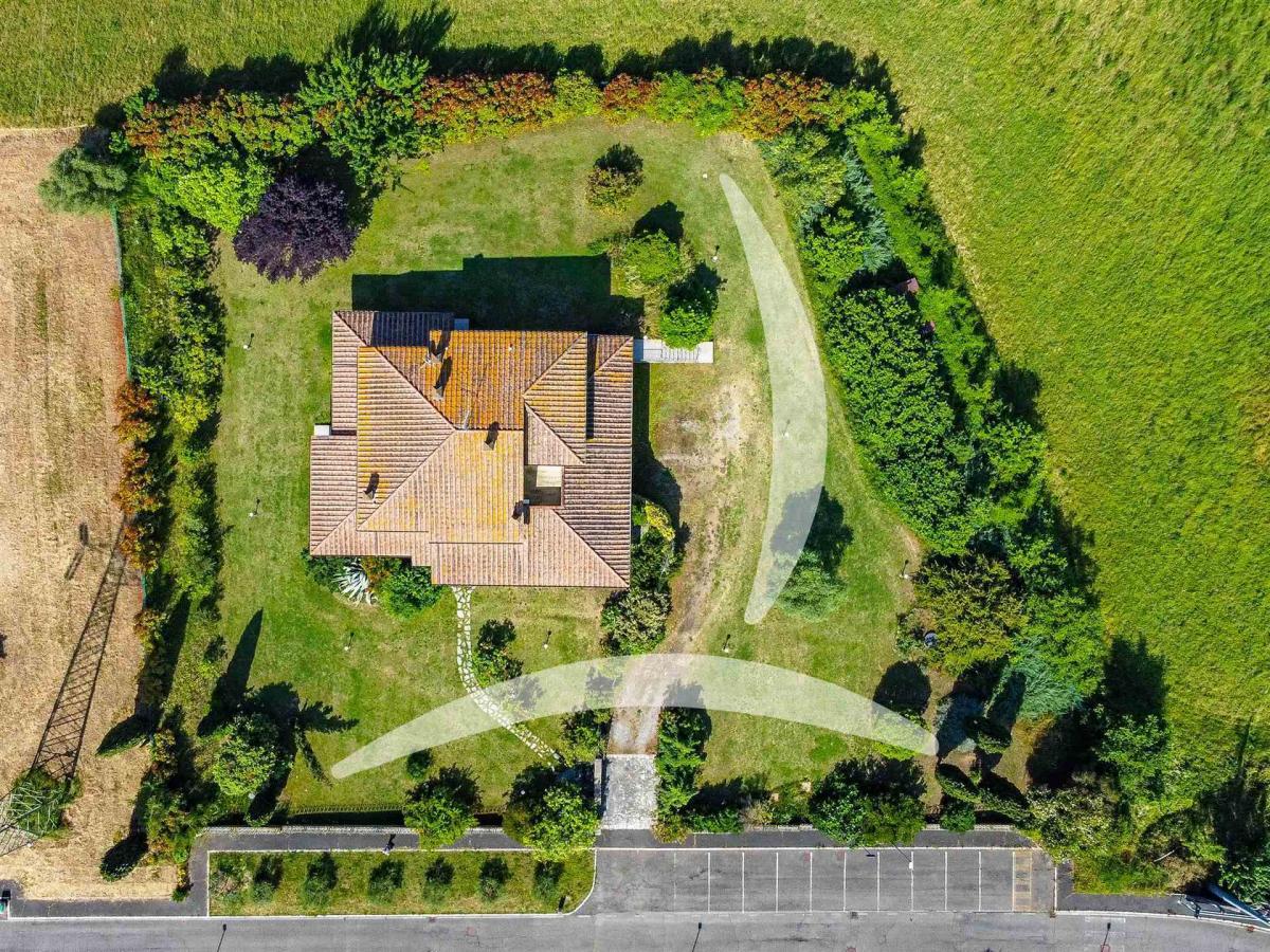 The garden surrounding the villa is truly a paradise, with 10,000 sqm of land fully illuminated, fenced, and equipped with a computerized irrigation system. The garden is beautifully landscaped with pathways, flowerbeds, lawns, and tall ornamental trees. Additionally, there is an artesian well and automated gates. The external porch, with masonry arches and wooden beams, houses a bread oven and a barbecue. The outdoor spaces are ideal for relaxing or hosting guests in a peaceful and private setting.