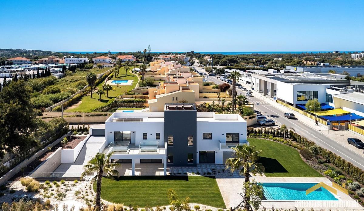 Modern 4 Bed Villa in Fonte Santa Quarteira Algarve - this brand new villa on 4 levels with an elevator is set in a plot of 1,940m2 has 4 bedrooms, suites with a large basement areas to be personalised to different types of additional accommodation and is located just 2kms to the beach and walking distance to Alsakia with restaurants and padel courts, The 450m2 villa has a double-height entrance hall, leading into bright open-plan accommodation with a well-appointed kitchen with a central island that flows into the dining and living areas, framed by floor-to-ceiling windows overlooking the south-facing swimming pool and gardens. There are four bedroom suites. There is also a spectacular rooftop terrace, offering panoramic views of the surrounding countryside and sea in the distance. The lower level has a large basement space, with options to create a private cinema, gym, or leisure area plus a a spacious garage and ample storage areas. in brief: - reception hall - visitors cloakroom - lounge and diner - kitchen and breakfast island - laundry room - 4 bedrooms - 4 bathrooms - lower level basement with bathroom - garage - roof top terrace - swimming poolFeatures
