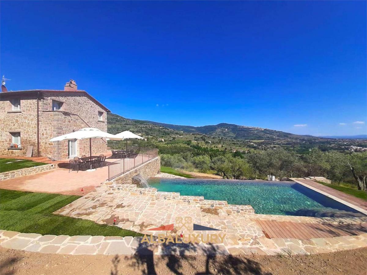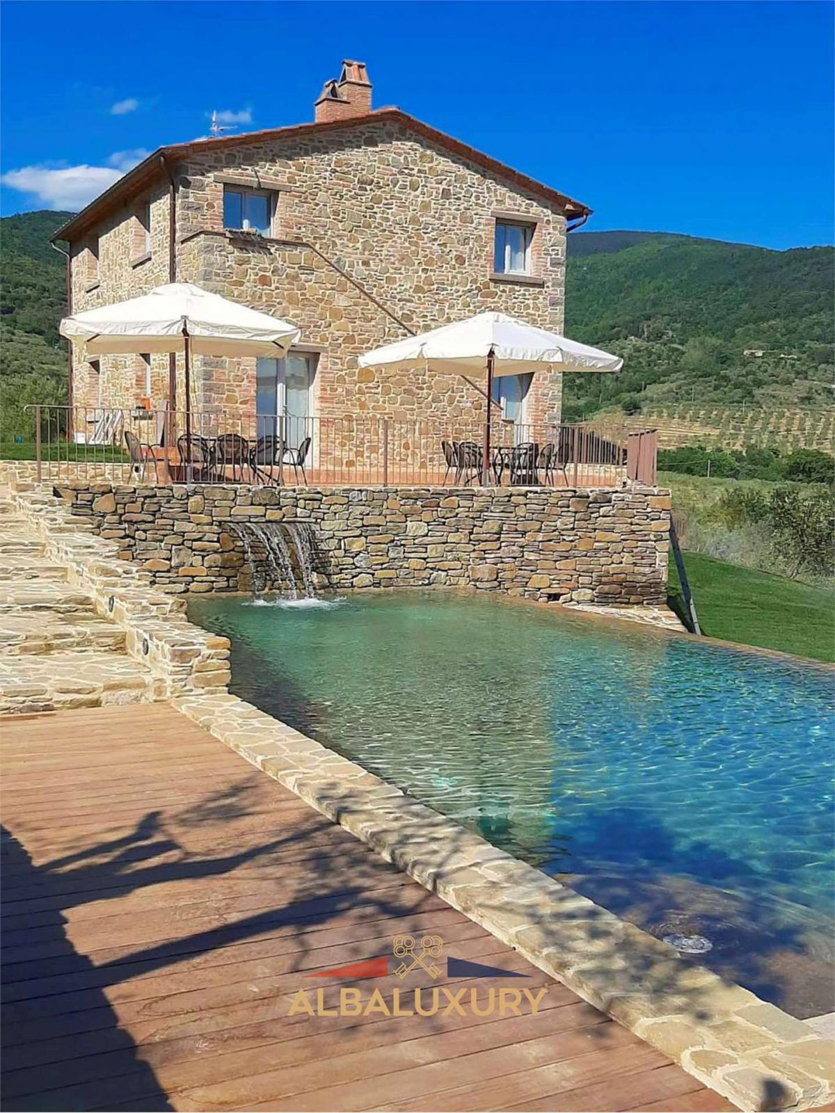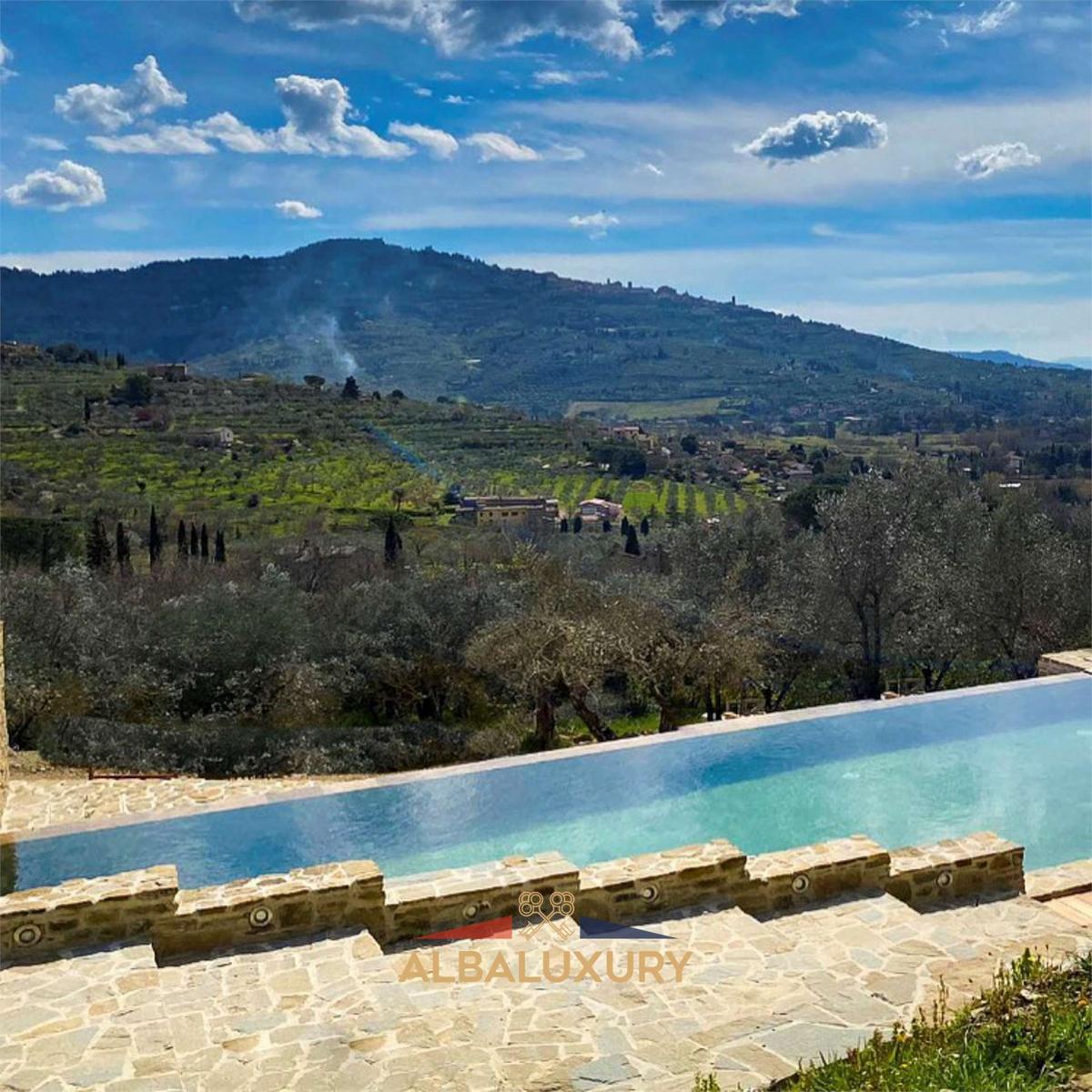 Elegance and Comfort in the Heart of Tuscany^An elegant residence located in a strategic position in Cortona, perfect for those seeking the utmost comfort and privacy immersed in a breathtaking natural setting.^Key Features:^Prime Location: Just 28 km from Piazza Grande and 39 km from the Terme di Montepulciano, Villa Tornavento offers convenient and fast access to the main attractions of the region.^Land and Pool: Surrounded by 2 hectares of land, the villa features a beautiful outdoor pool and a manicured garden, ideal for relaxing and enjoying nature.^Outdoor Spaces: The villa is equipped with barbecue facilities, a panoramic terrace, and a private pool, perfect for outdoor leisure and conviviality.^Size: The villa extends over approximately 340 square meters, spread over 3 floors.^Bedrooms and Bathrooms: Comprising 5 bedrooms and 6 bathrooms, all with bidet and shower, it guarantees ample space and comfort for every need.^Interior Layout:^First floor: Living room with kitchen.^Upper floor: 2 bedrooms, 3 bathrooms, and a living room.^Top floor: 3 bedrooms, each with its own bathroom.^Energy Efficiency: Class A energy efficient air conditioning with solar panels.^Accessories: WiFi connection, private parking, garage in the basement, and a private road for access to the villa.^Additional Features: Presence of a well and olive trees, adding a touch of authenticity and sustainability to the property.^Accessibility:^Train Station: Perugia train station is 50 km away.^Race Track: The Magione Race Track is located 36 km from the property.^Airport: The nearest airport is Perugia San Francesco d'Assisi, 61 km away.^An Oasis of Luxury and Tranquility:^It is the ideal choice for those seeking a luxury retreat in the heart of Tuscany, with all modern comforts and a charming natural setting. Contact us today for more information and to discover how this villa can become your new dream home.,