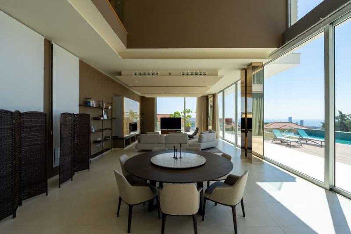 Sale of spectacular 3-storey villa situated in Limassol's prestigious Green Area. It has breathtaking views overlooking the sea and the city. First floor offers a spacious living and dining layout with a fire place access to an expansive terrace with an overflow swimming pool (with heating) and direct sea views, sleek chef's kitchen, guest WC. Second floor offers large 3 bedrooms, all with breathtaking sea views and all en-suite. Ground floor features 2 bedrooms, all en-suite, SPA with sauna, cinema room and large open floor. Garage for 2 cars and a motorcycle. Key Features: 6 bedrooms, 6 bathrooms, spacious living area spanning over 1000 m2, large plot 1000 m2, elegant marble and hardwood floors, expansive glass doors and high ceilings, underfloor heating for year-round comfort.Reference number: 99532