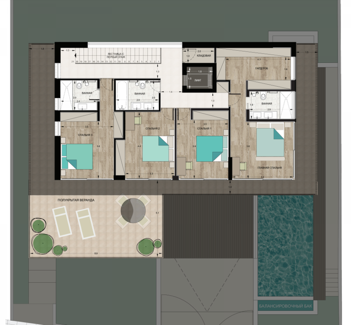 Outdoors, a private swimming pool complements the serene surroundings, and the modern smart home system enhances your lifestyle with state-of-the-art control.
