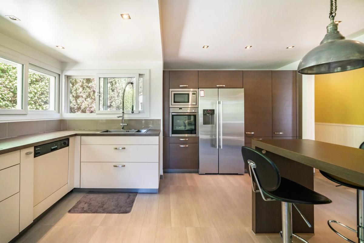 There are five bedrooms, a shower room and a further bathroom that includes a walk-in shower and a toilet. The charming 50m2 guesthouse features a living room, a modern kitchen, one bedroom and a bathroom. The large bay windows and French doors in the living area creates a wonderful connection with nature.
