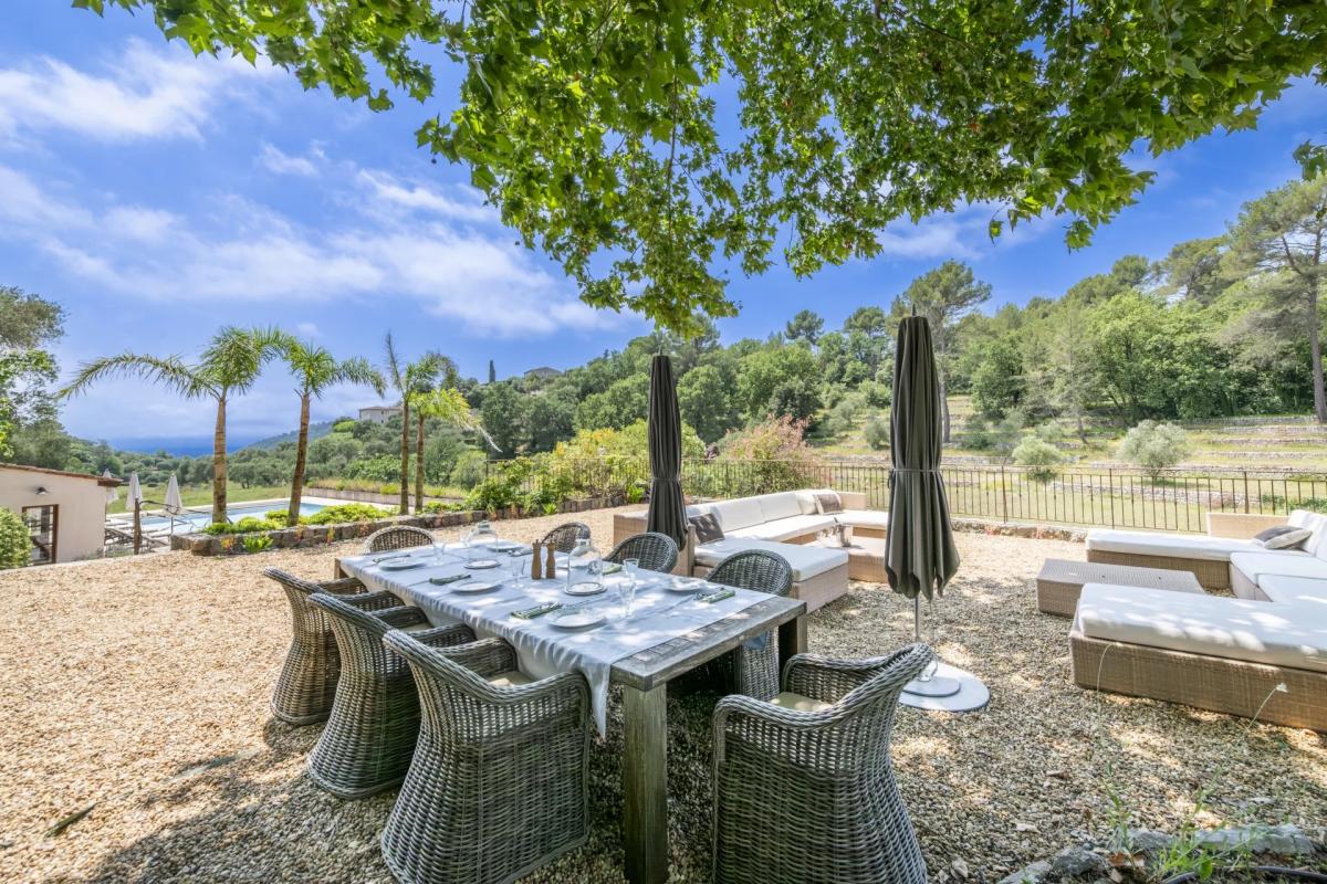 The beautifully preserved 200-year-old Bastide, featuring traditional stone-framed facades, is nestled in the tranquil countryside just 25 minutes from Cannes. This charming old Provencal farmhouse exudes historic charm, set on 3 hectares of land, and offers an extended stunning view of the gardens that culminates in a breathtaking sea vista.