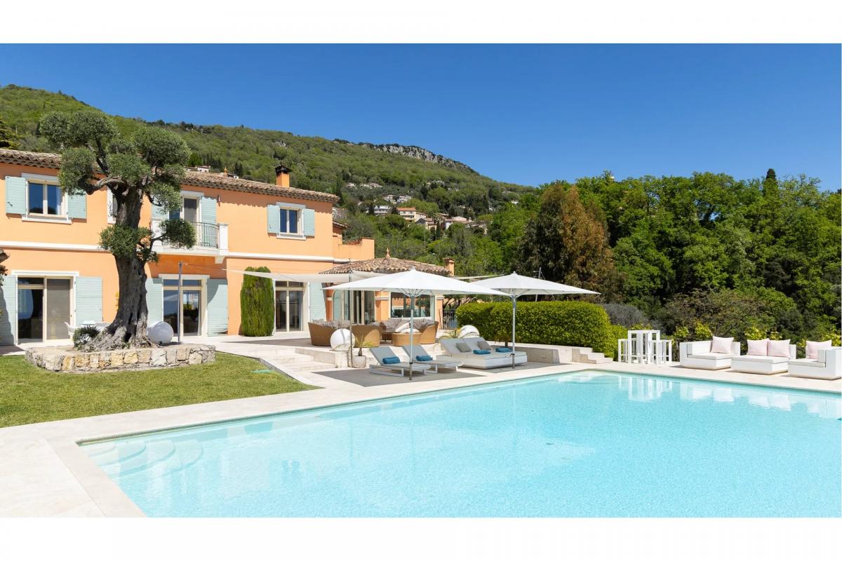 EXCLUSiVE:Just a few minutes away from the charming villages of Chateauneuf-de-Grasse, Valbonne, and Mougins, this contemporary luxury villa is nestled in a peaceful environment, within a private park of over 5,000 m2, dotted with century-old olive trees. Located in Grasse Magagnosc, it offers a spectacular panoramic view extending all the way to the Mediterranean Sea.
