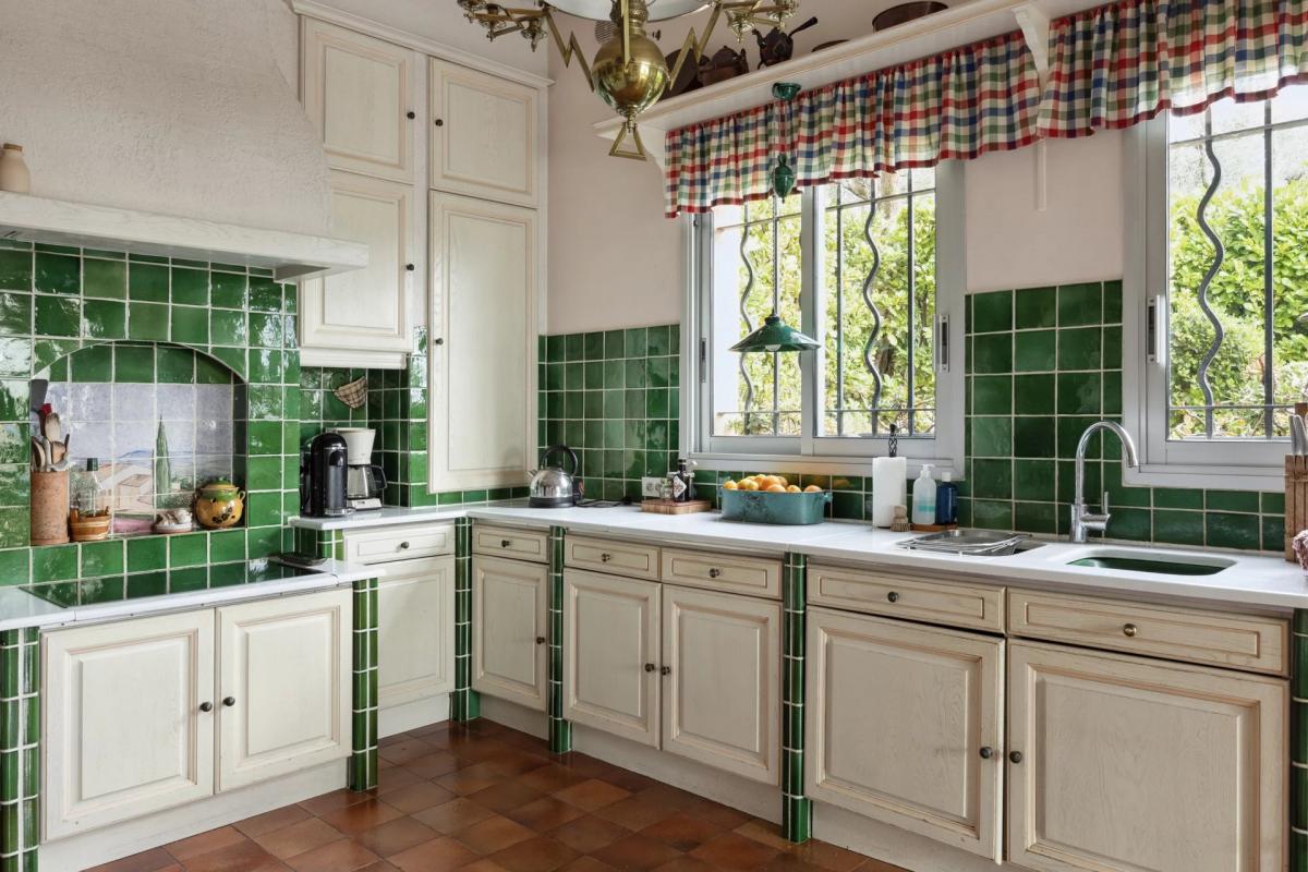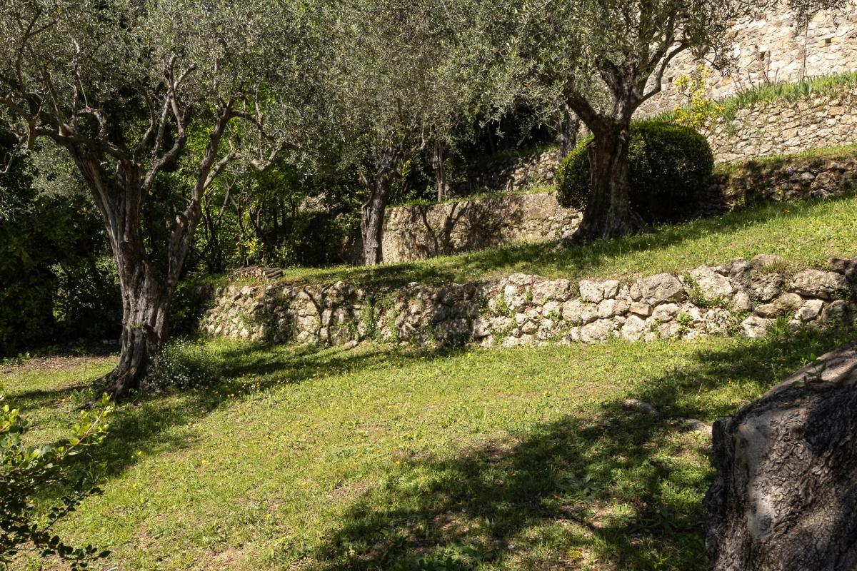 Auch die Kuche mit Zugang nach draussen bietet eine schone Aussicht. Daruber hinaus besteht die Moglichkeit, das Untergeschoss in eine separate Wohnung (90m2) umzuwandeln. Der Garten ist mit Obstbaumen, Zypressen und Olivenbaumen bepflanzt und profitiert von einem halbautomatischen Bewasserungssystem.