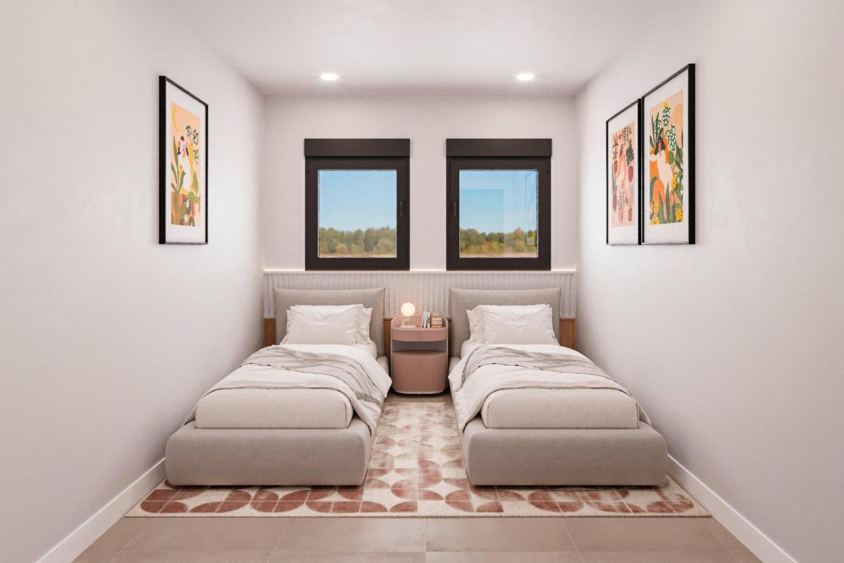 Newly built residential development of villas and townhouses in Fuente alamo, Murcia.This location offers an exceptional natural environment, far from the hustle and bustle of big cities and the tourist pressure of the coast. Furthermore, we are committed to working from a sustainable development perspective, minimising our environmental impact and maximising integration with the local community. Here, your dreams of a peaceful and sustainable lifestyle become a reality. imagine waking up every morning in a amazing natural setting, surrounded by peaceful landscapes and the unique beauty of the Murcian countryside.This development prioritises energy efficiency, the use of environmentally friendly materials and harmonious integration with the rural environment. From the design of the property to the planning of the development, we strive to reduce our carbon footprint and promote responsible practices in all our operations.Full ducted air-conditioning, hot/cold.Video intercom system.Colour-lacquered security access door with lock and anti-vandal security fittings.Cupboards with storage space, lined inside, lacquered in white.Kitchen furniture with appliances included.Hot water by aerothermal energy.Electric blinds.Pergolas in solariums.Private 2.5x4.5m swimming pool with underwater night lighting and salt chlorination system.Pre-installation for outdoor kitchen/jacuzzi in solarium.Fuente alamo de Murcia is a town and municipality in the Region of Murcia, in southern Spain. it is located 22 km northwest of Cartagena and 35 km southwest of Murcia.The town is situated in the Mar Menor basin, surrounded by the Algarrobo, Los Gomez, Los Victorias and Carrascoy mountain ranges. The water from these mountains flows down into the Rambla de Fuente alamo and then into the Mar Menor.Fuente alamo is thirty minutes from Murcia - Corvera airport. Nearest shops six kilometres away.