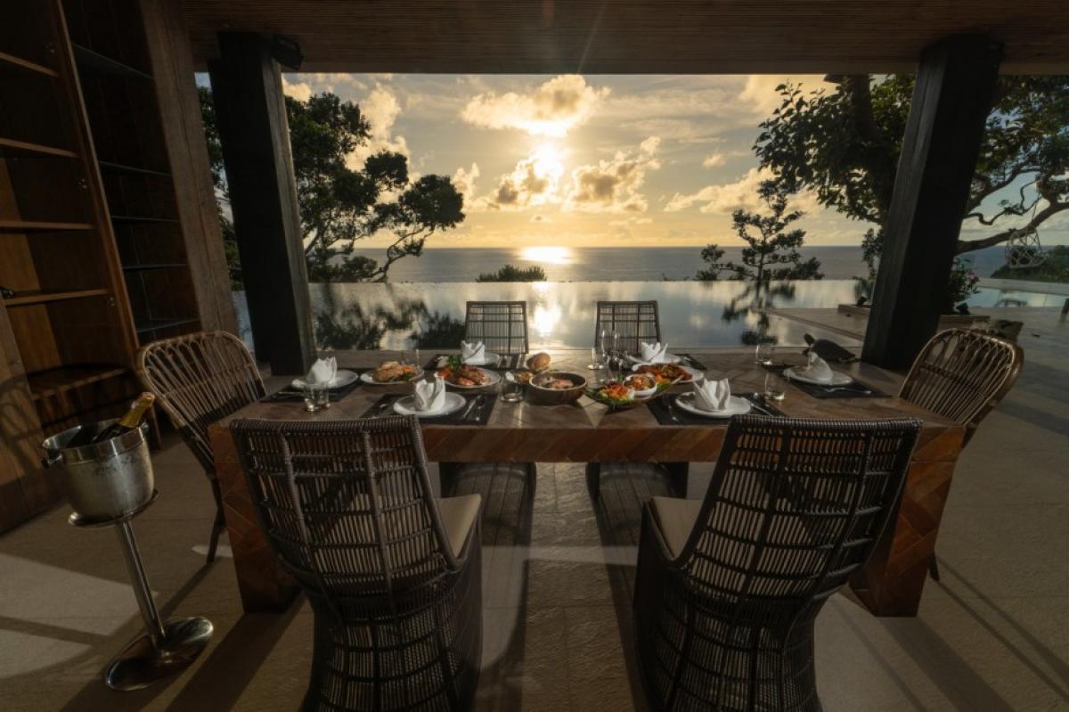 Step outside to discover the 24-meter infinity pool that blends seamlessly with the horizon. The surrounding terrace offers both sunbeds and shaded loungers, creating the ideal environment for soaking in the tropical ambiance. Take a stroll through the landscaped gardens filled with frangipani trees and exotic palms - a serene escape from everyday life.